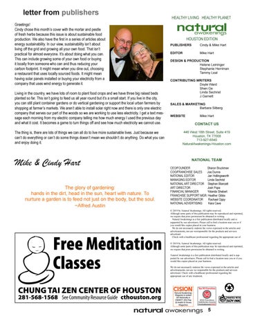 CONTACT US 446 West 18th Street, Suite 419 Houston, TX 77008 713-927-6540 NaturalAwakenings-Houston.com