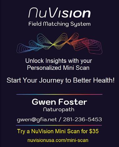 To advertise with Natural Awakenings or request a media kit, please contact us at 713-443-3186 or email: mike@naturalawakenings-houston.com. Deadline for ads: the 10th of the month.
