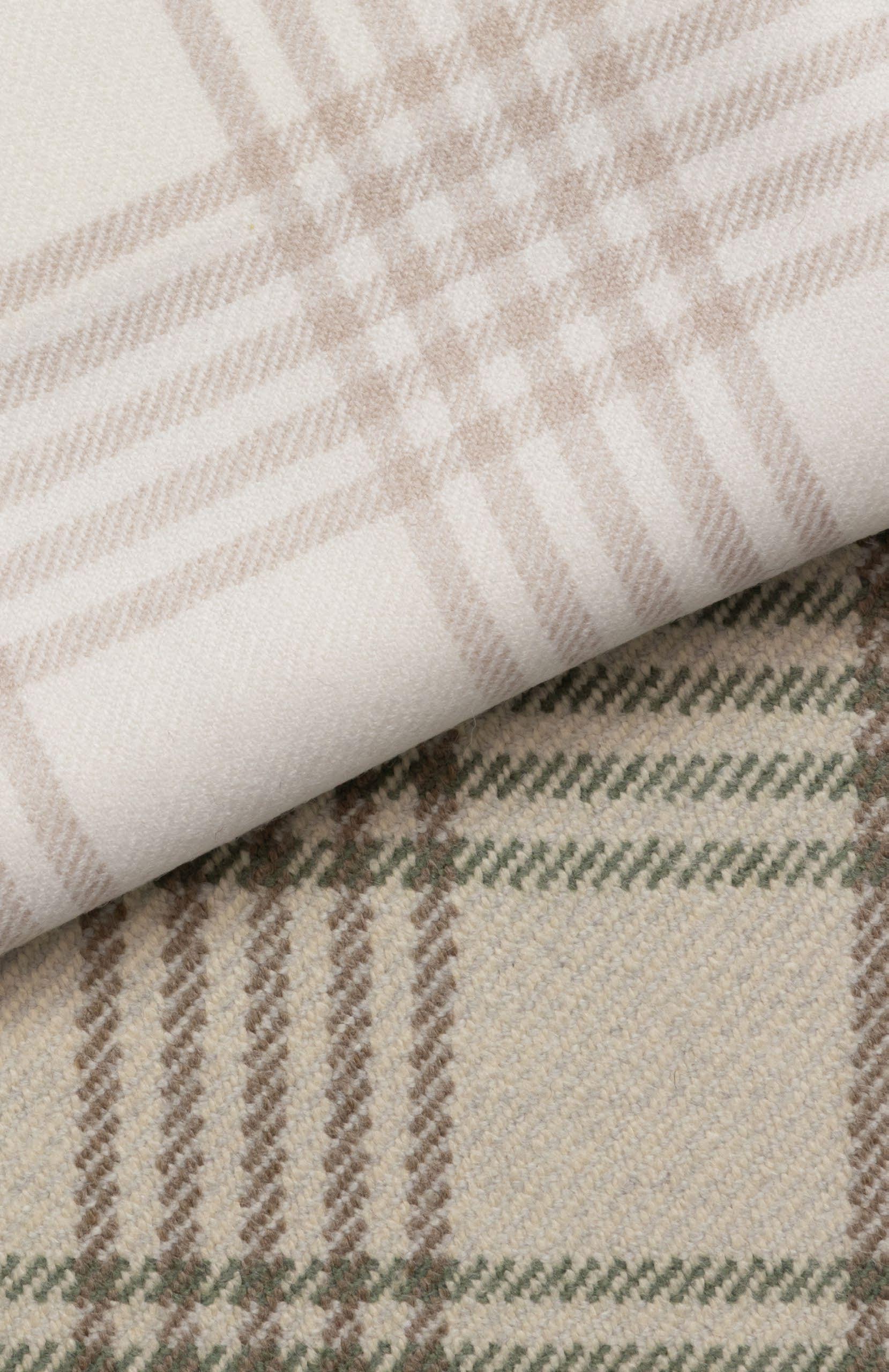 The client requested Holland & Sherry’s Baudelaire design in both a custom color, unique plaid line style and a heavier weight. The top image presents the original from the collection, while the bottom showcases the bespoke fabric created exclusively for the client.