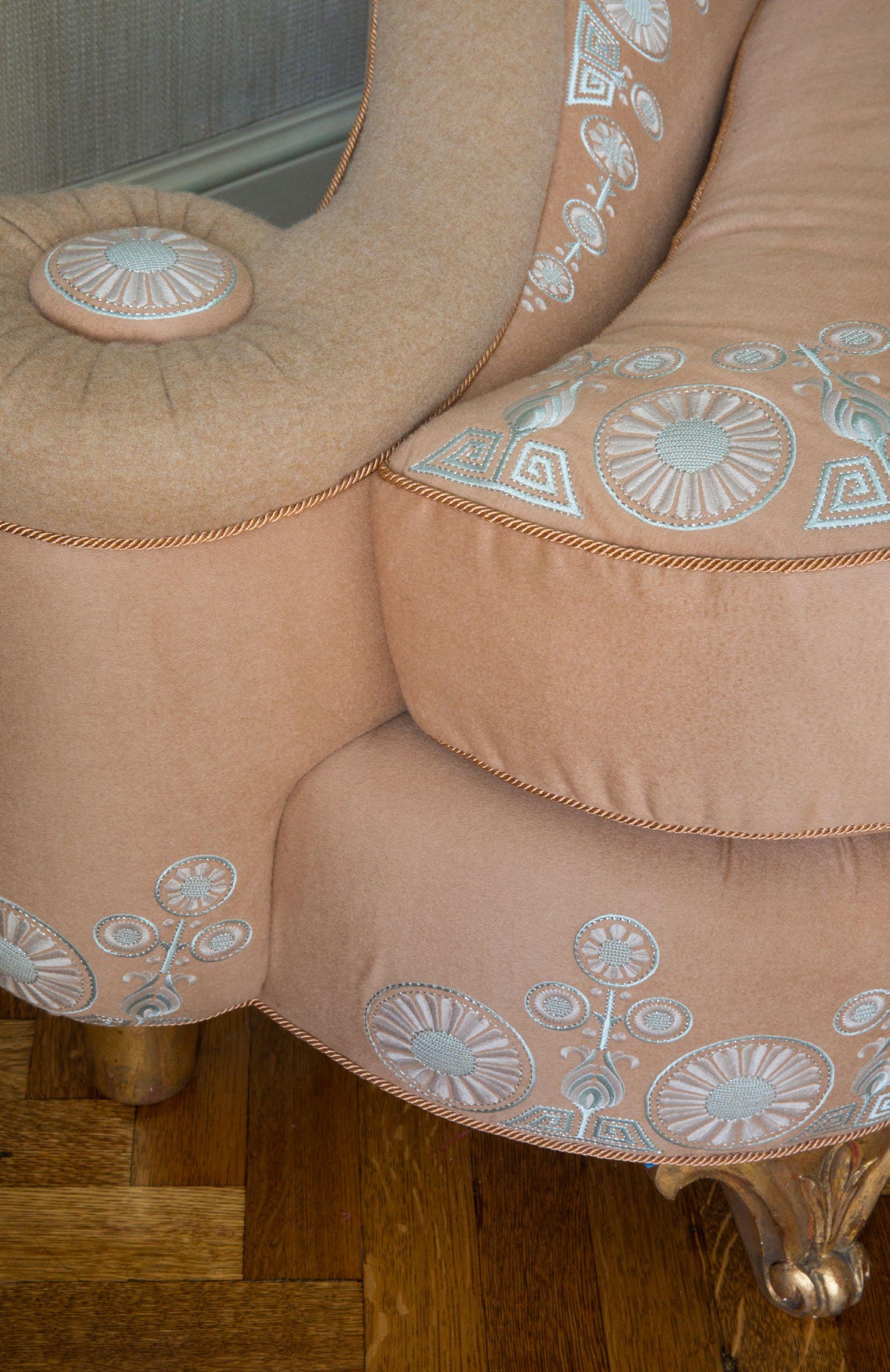 SCOPE | Fully custom embroidery on sofa for Eric Hilton Ltd.