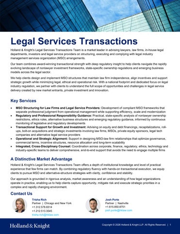 Founded in 1889, Holland & Knight is a global law firm with approximately 2,200 lawyers and other professionals in 35 offices worldwide. The Firm's lawyers and advisors provide representation in litigation, corporate and finance, real estate, healthcare and governmental matters. Interdisciplinary practice groups and industry-based teams provide clients with efficient access to attorneys throughout the Firm.