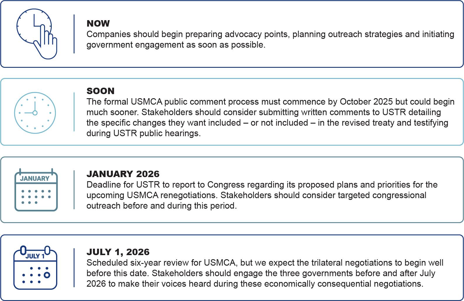 Companies, associations and other stakeholders have an opportunity to influence these negotiations through targeted government advocacy Holland & Knight's International Trade Group is distinctly qualified to assist clients as they engage North American governments in connection with the USMCA review Our team includes: