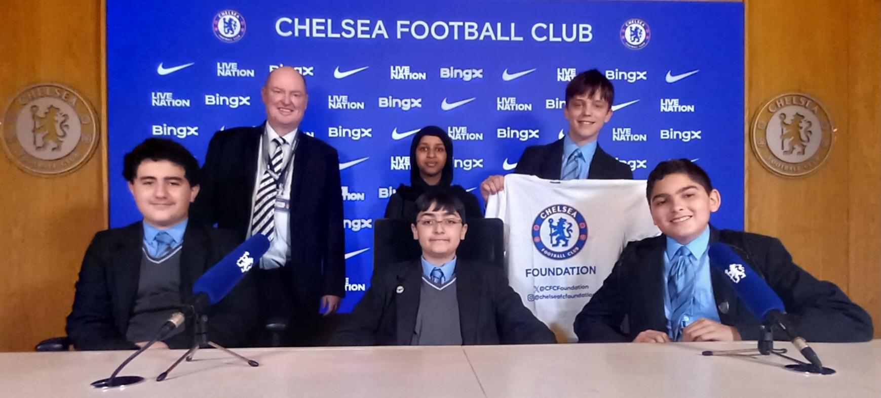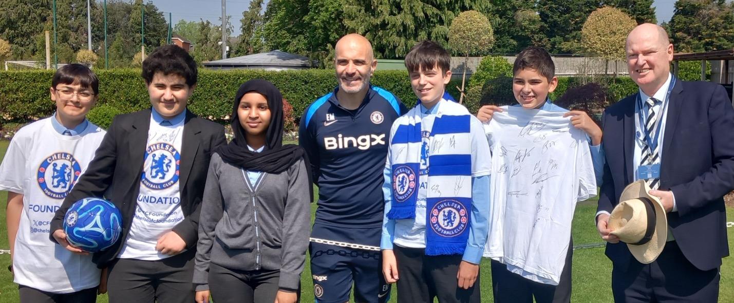 Our association with Chelsea FC Foundation has flourished throughout what has been a fabulous year for both Year 9 and 10 students involved with the foundation's programmes The culmination of a very successful year saw 5 lucky year 9 students travel to watch the Chelsea men's team at a training session There they received scarfs and footballs and the opportunity to meet the players and get their signatures. They also got to have a photo with the manager and one in the media centre Lisa Manley from the Foundation said that this was a rare opportunity not open to the public and the students may not realise how lucky they have been until much later in life We look forward to another productive year during the next academic year while thanking Lisa and her team for making this year so memorable.