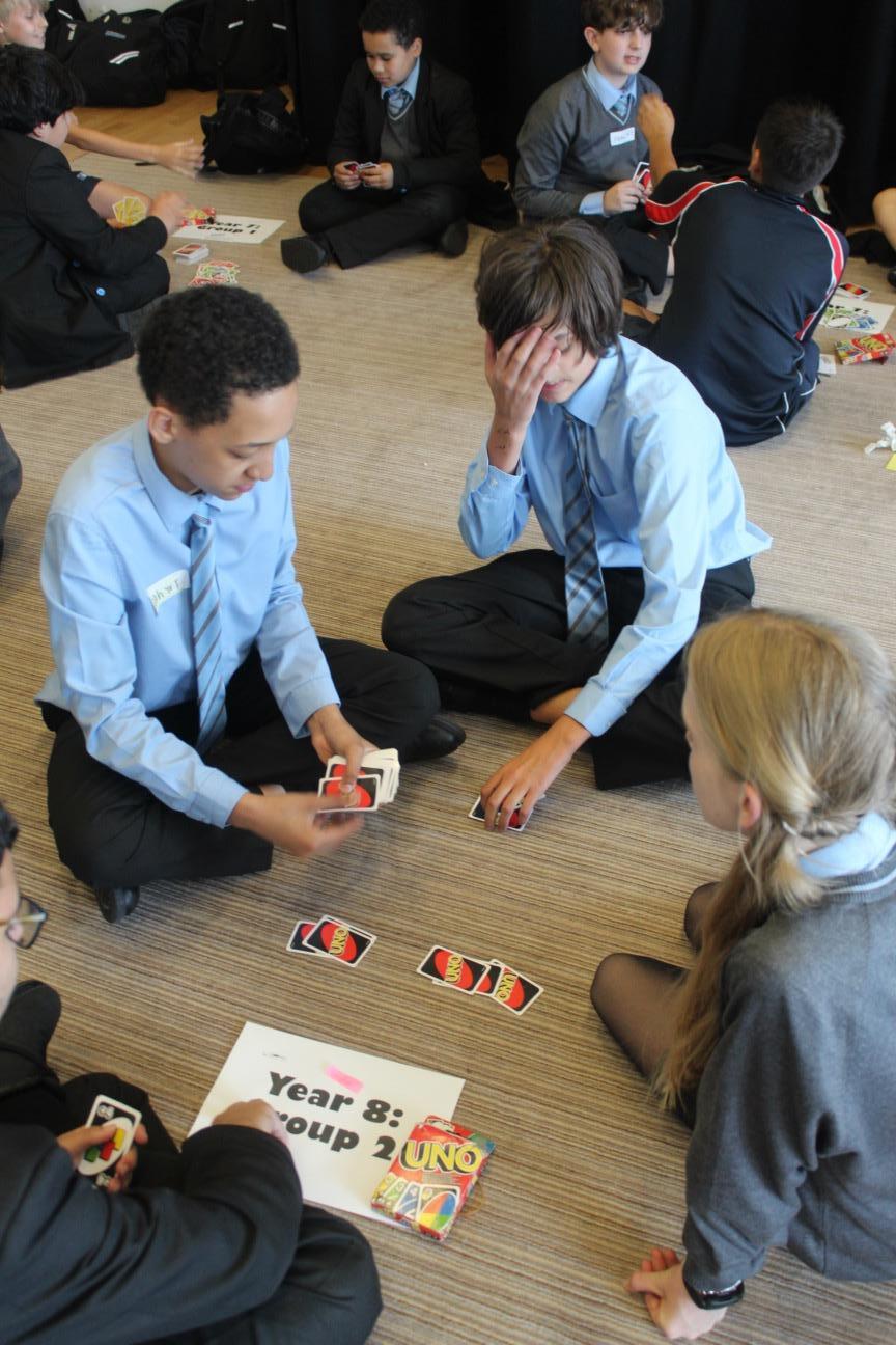 The KS3 Inter-house UNO competition brought an unexpected surge of excitement to Room 4.12 on Wednesday afternoon, with students from Years 7 to 9 showing up in droves to represent their houses From the moment the doors