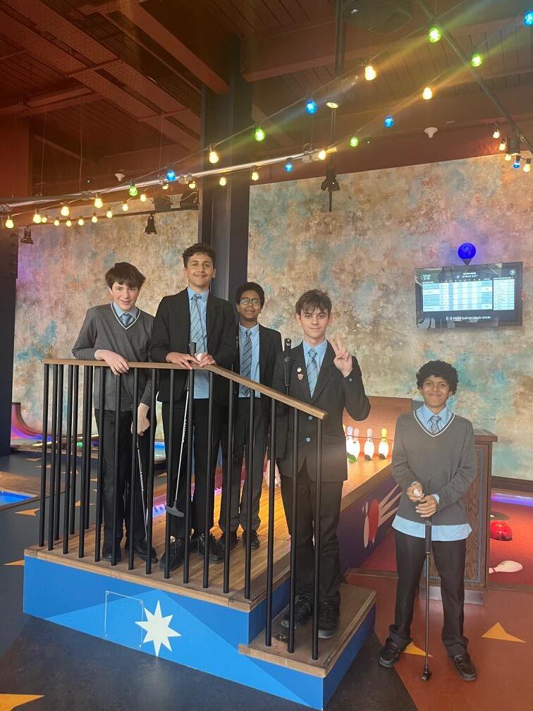 So many students qualified for our Golden Postcard trip in the Spring Term that we organised two trips for the start of this term Students who had been awarded 10 Golden Tickets in lessons, for demonstrating any of our three values of aspiration, integrity and respect were invited for mini-golf and pizza at Puttshack White City Students who attended the trip were very deserving of this opportunity to demonstrate their golf skills and socialise with members of their year group outside of school It was wonderful to have had so many students qualify, a true testament to the manners and determination exuded daily by students at our school.