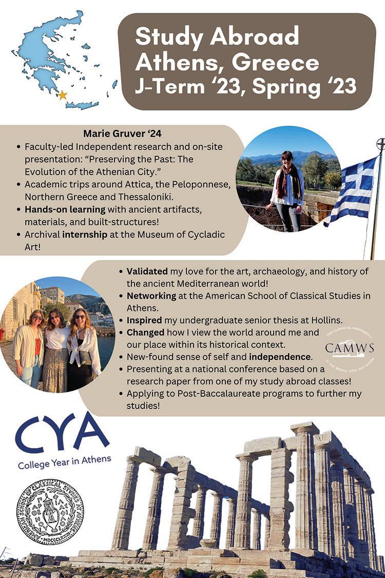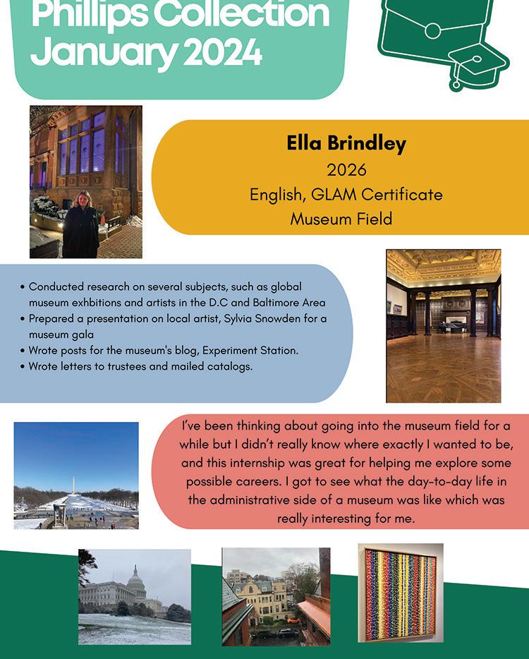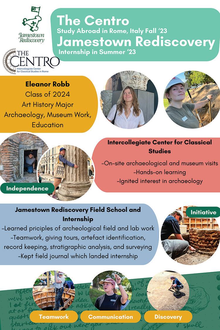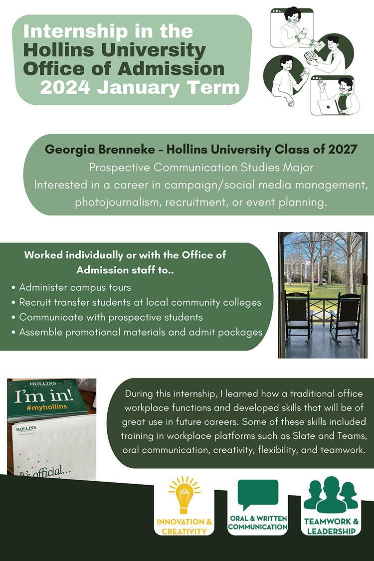 During last February’s Leading EDJ conference, through collaboration and support from Hollins’ Career and Life Design and Global Learning offices, 28 Hollins students participated in an Experiential Learning Showcase. They created posters highlighting their experiences in study abroad and internship opportunities. The broad range of experiences and insights is impressive and indicative of the boundless opportunities offered to students as Hollins undergraduates.