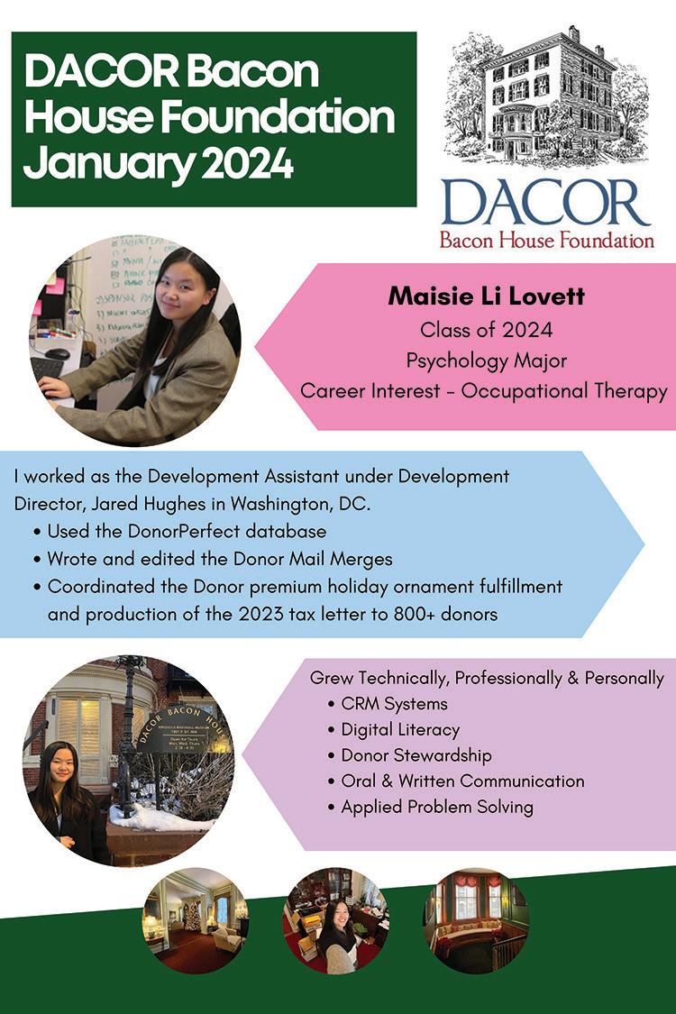 Minds also caught fire and careers have begun in the class of 2024, wherein we have students heading to graduate school at Sarah Lawrence, Duke, UVA, UNC-Chapel Hill, Tufts Veterinary School, and EMLyon Business School in France. Employers include Hershey, Disney, and the City of Charlotte. Our returning students spent the summer doing research at Virginia Tech and the University of Missouri, as actuarial interns at New York Life, and more.