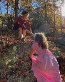 Georgia Brenneke ’26 and Chloe Samuel ’25 celebrated Tinker Day 2024 by recreating the iconic photo (pictured left) of students climbing Tinker Mountain in the 1890s.