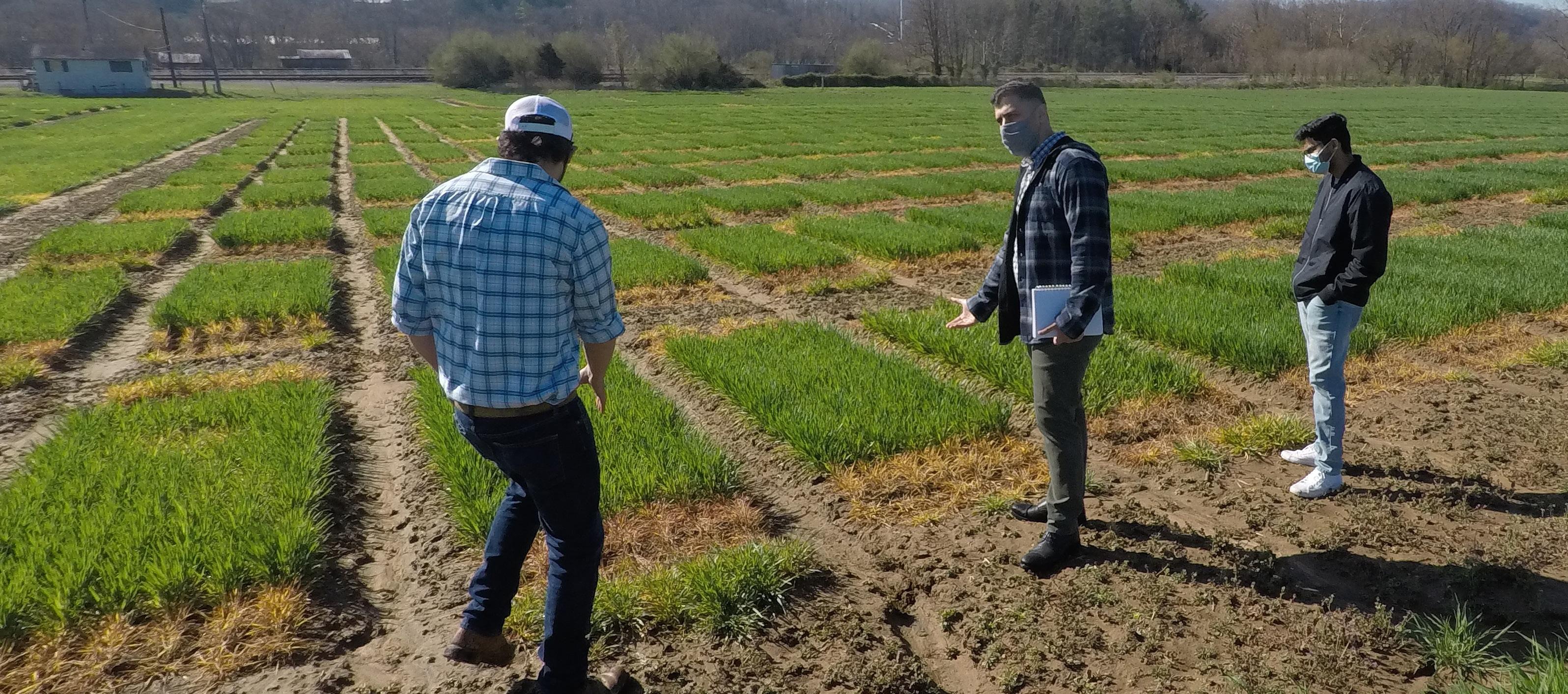 1. Researchers gather at the CCI Cyber Living Innovation Lab on George Mason University’s Arlington Campus to discuss testbed capabilities. 2. CCI xG Testbed Director Aloizio Pereira da Silva fields questions. 3. CCI takes it to the streets by funding research on autonomous vehicles. Zoran Duric, associate professor; Professor Duminda Wijesekera, computer science; and graduate students Yongxin Wang and Bo Yu on George Mason University’s Arlington Campus (pictured clockwise left to right) 4. CCI Researcher Feras Batarseh (center) brings artificial intelligence assurance to agriculture decision-making.