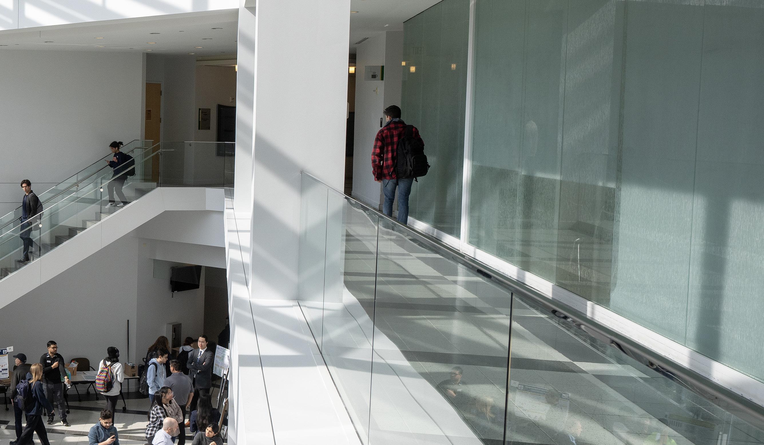 Attendees explored the new facility in Mason’s Research Hall on the Fairfax Campus. The space includes a 1,649-square-foot, two-story aviary for testing drones, areas for lab experiments, faculty offices, collaboration and study areas, and a student lounge.