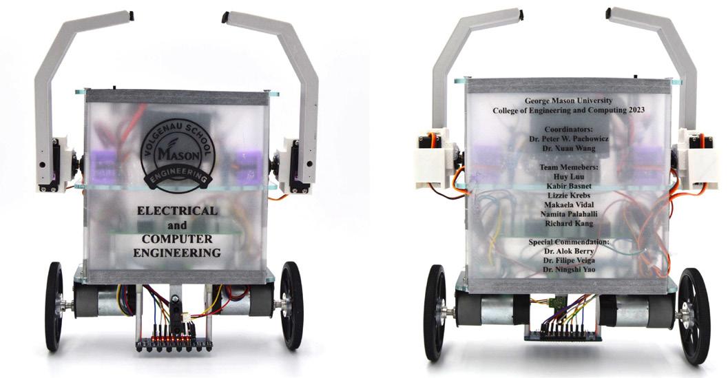 GROWING INTO NEW SPACES: Our cover features Ethan Ahn and sophomore undergraduate Virginia Nardelli in the new Nanofabrication Facility (NFF) at our SciTech Campus in Manassas. Ethan has been involved in the development of this facility including the clean room, which he used in the spring 2024 semester to teach his new graduate course Nanoelectronics. The Mason Autonomous Robotics Center (MARC), the newest research center within the college, had its official grand opening in April. Located in a newly renovated space in Research Hall, the MARC involves faculty from across several departments including ECE faculty members: Cameron Nowzari, Filipe Veiga, Xuan Wang, and Ningshi Yao. Fittingly, MARC director Missy Cummings, has a joint faculty appointment Electrical and Computer Engineering (ECE), Mechanical Engineering, and Computer Science. At the Mason Square Campus in Arlington, Liling Huang has been developing a new Smart Grid lab for research and teaching with the help of equipment donations from Amazon and Dominion Energy.