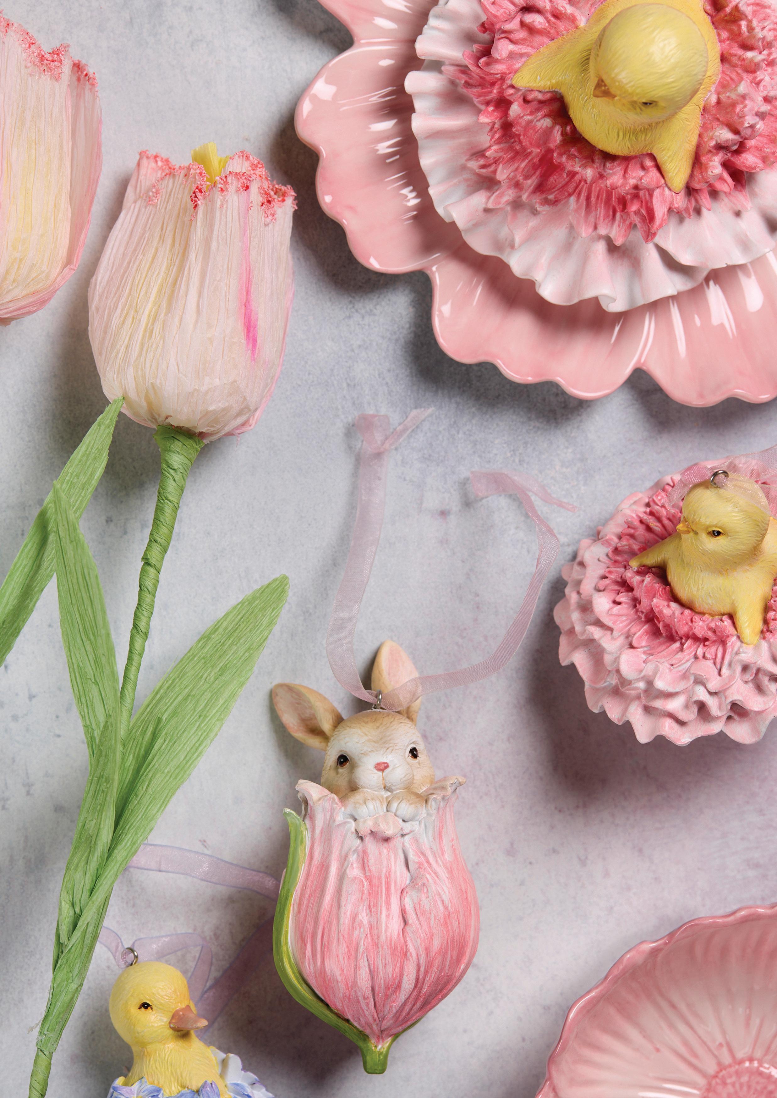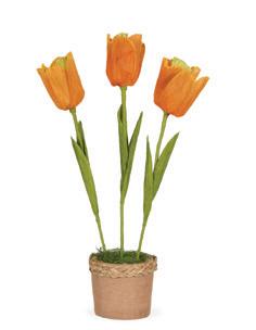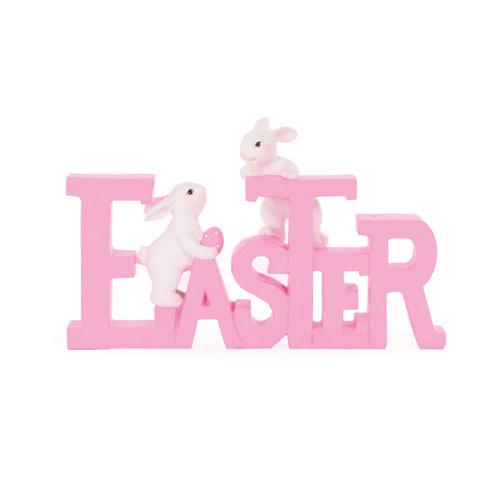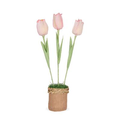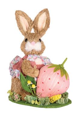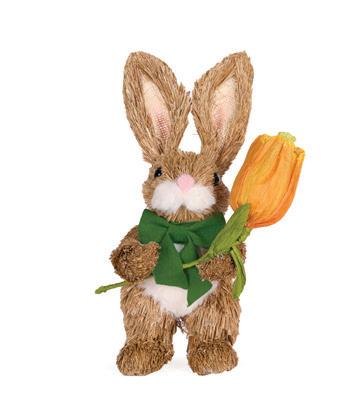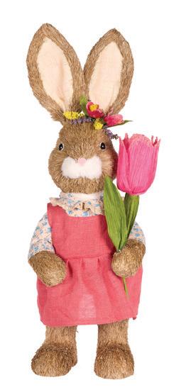 Floret Rabbit with Pink Tulip 13 x 16 x 37cm | Straw