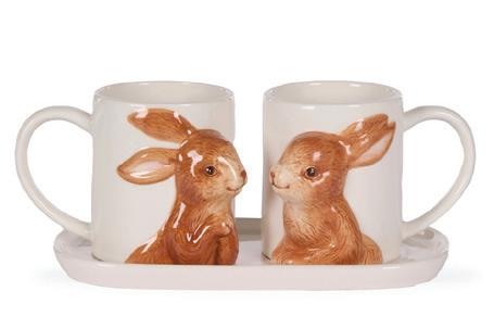 White Ceramic Bunnies Mug Set