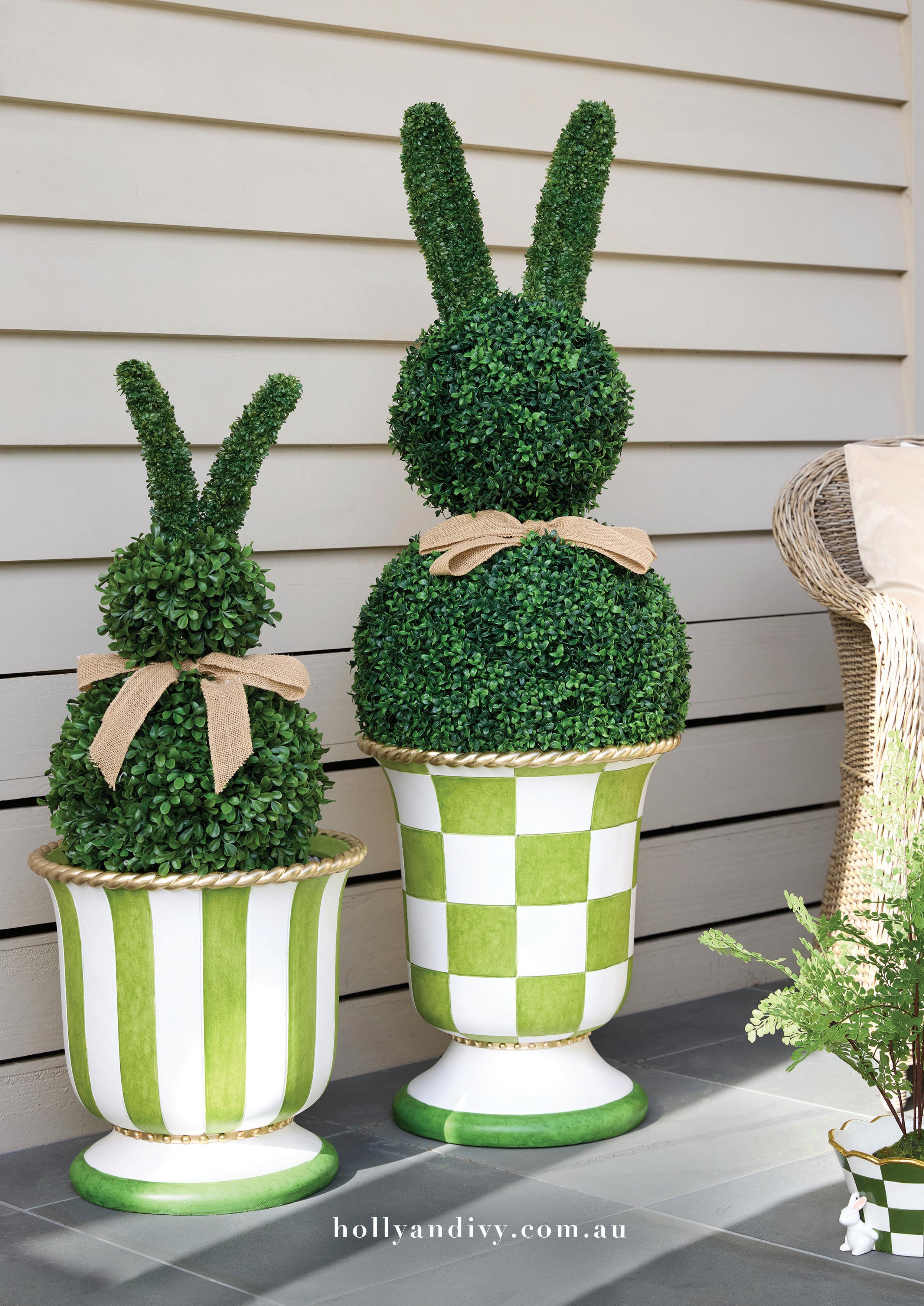 FEV013 114cm Topiary Bunny with Bow FEV011 Grand Verdant Check Planter
