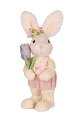 Floret Rabbit with Lilac Tulip 13 x 16 x 37cm | Straw