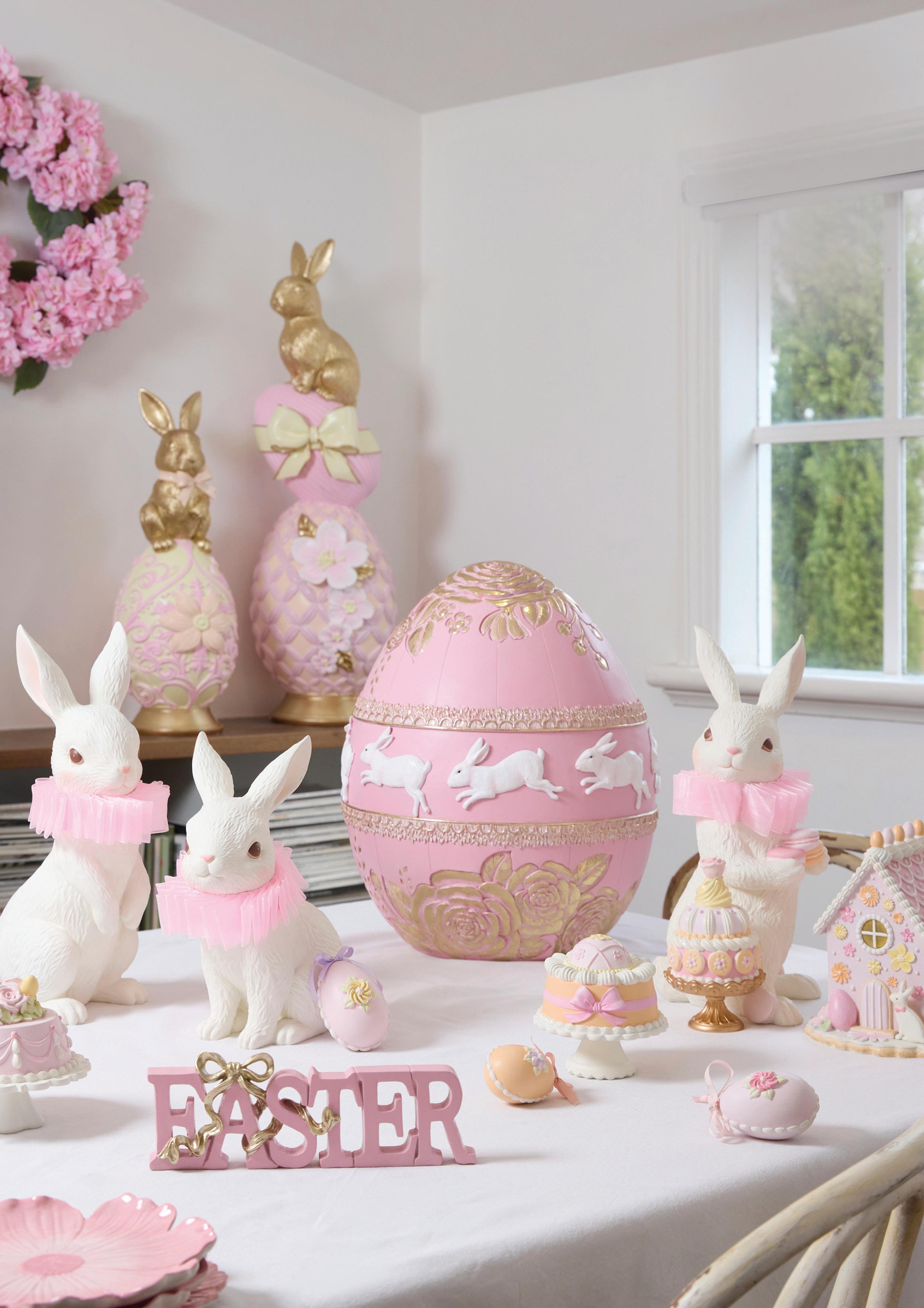 FEV014 76cm Topiary Bunny with Bow FEV010 Grand Verdant Striped Planter