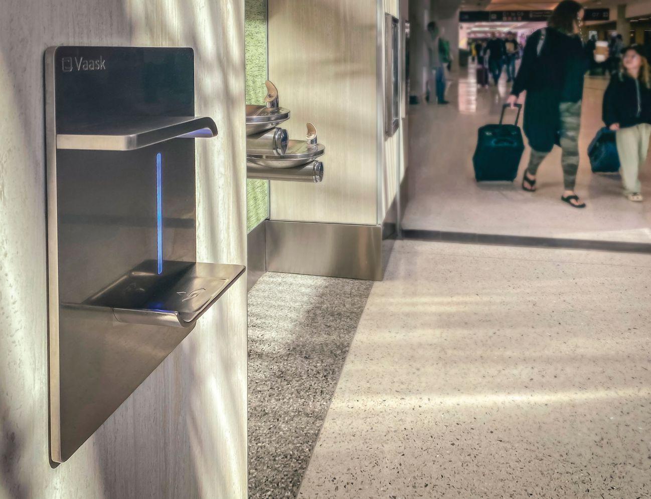The Vaask® touchless hand sanitizing fixture is available in customizable finishes and designed to complement the style of any space. It uses AC power or POE (power-over-ethernet) – no batteries required. Vaask is available recessed into the wall, in a wall-mounted stand or freestanding. Built to last, the U.S.-manufactured fixture is made of aluminum and backed by a 5-year warranty. The large-capacity, refillable cartridge is compatible with any alcoholbased sanitizer gel. Its PalmPilot® sensor accurately detects hands, eliminating mess. An array of LEDs both attract users and notify staff when it’s time to refill. Learn more at Vaask.com.