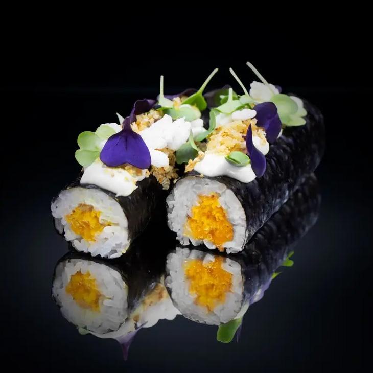 turns out that buttermilk pairs surprisingly well with salmon sashimi. And why wouldn’t pickled pumpkin make a good filling for vegetarian rolls?”