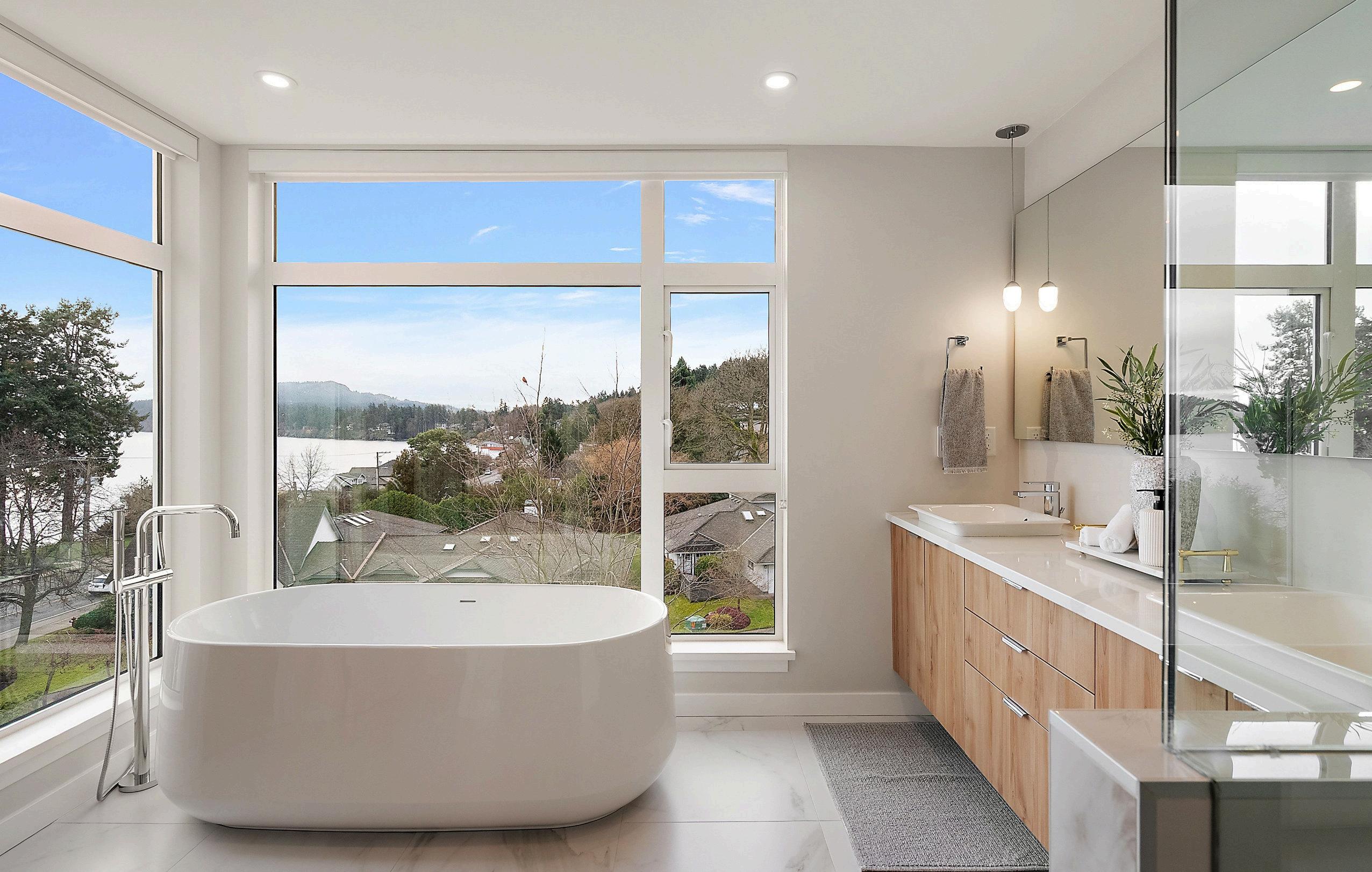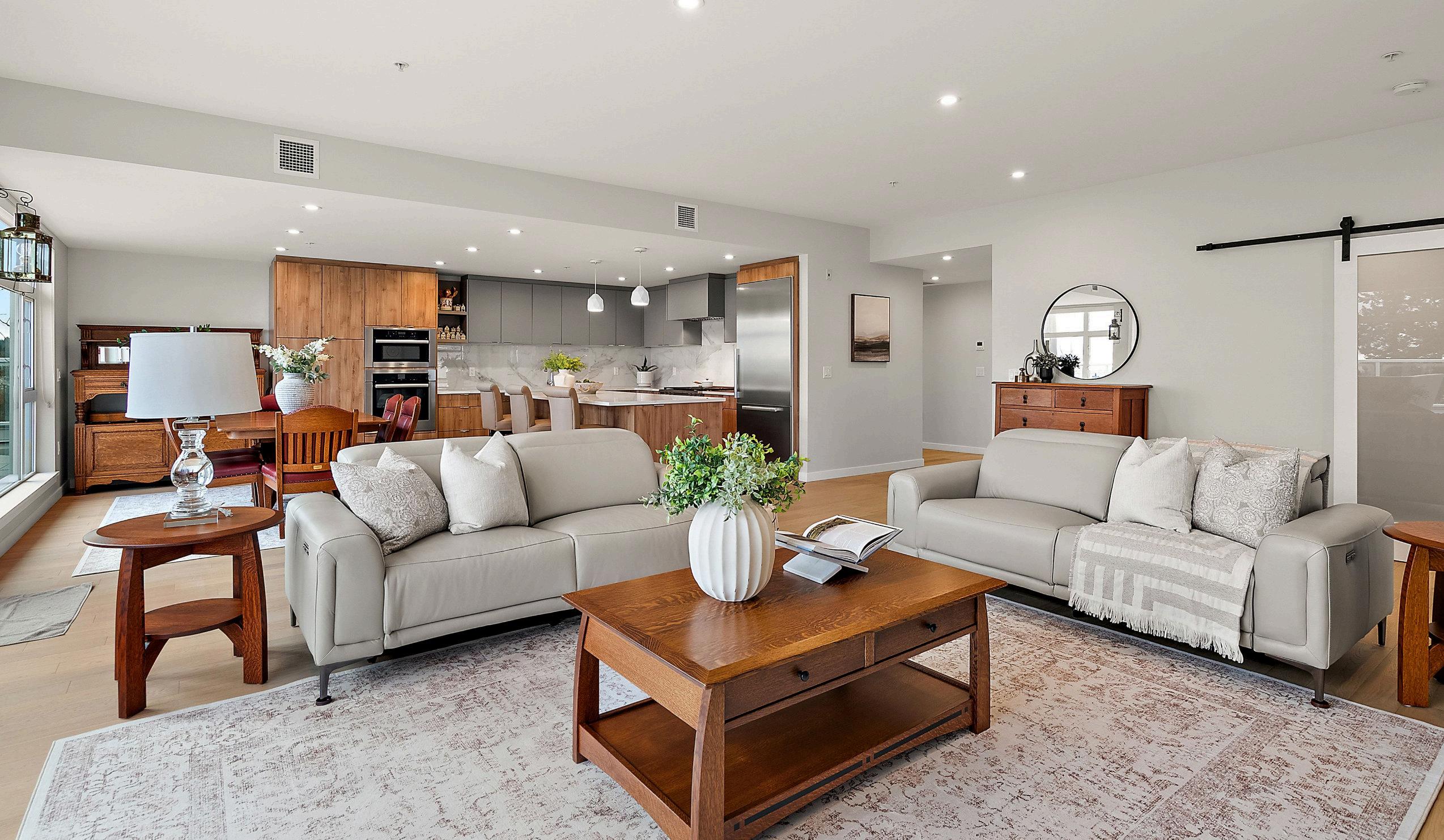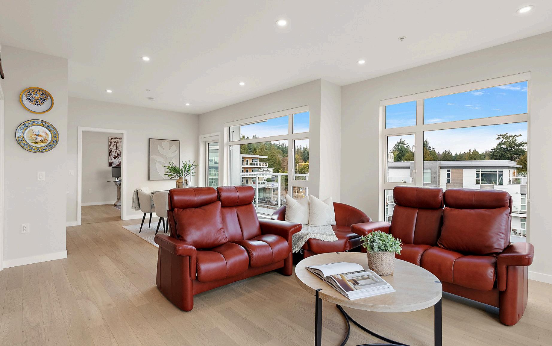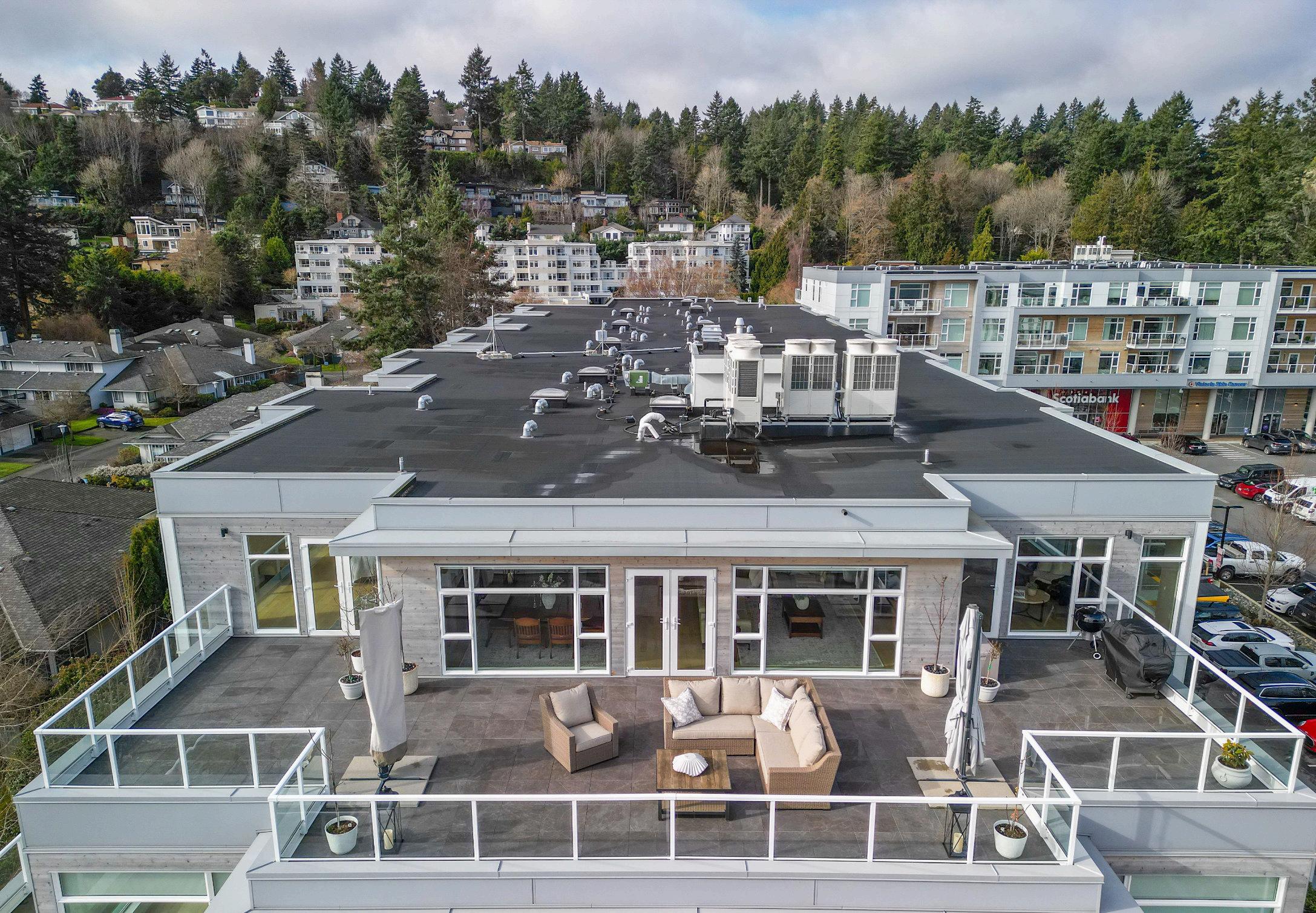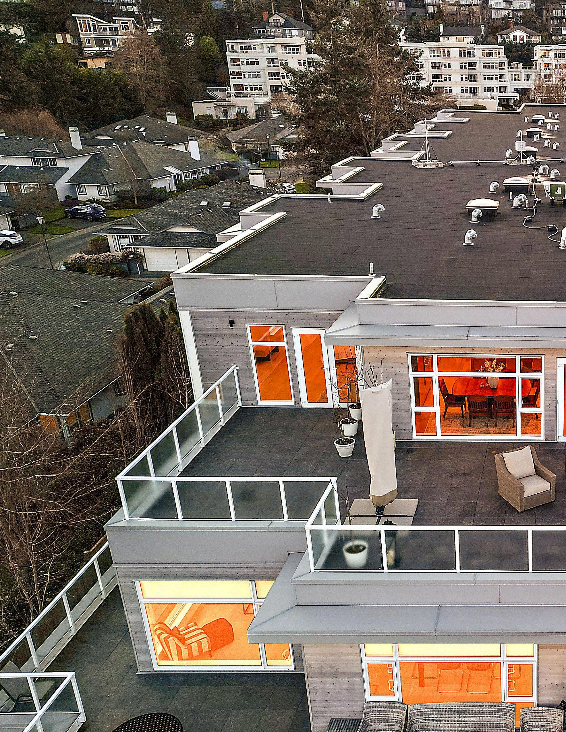 Step outside to the expansive 1,100 sq. ft. terrace and take in spectacular 270-degree views stretching from Cordova Bay’s sandy beaches to the snow-capped peaks of Mount Baker and beyond — a truly remarkable outdoor retreat.