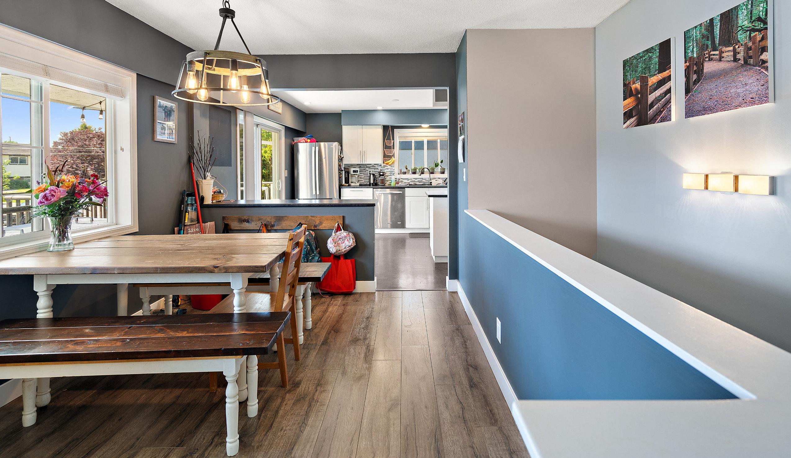 appliances, and ample counter space. This level also includes the master suite with a two-piece ensuite, plus two additional bedrooms and a four-piece main bath.