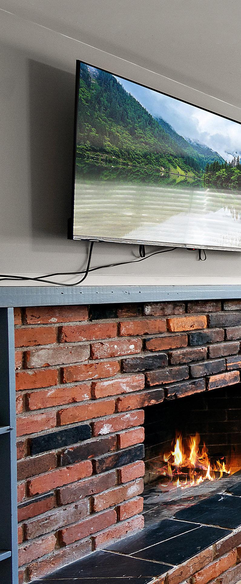 The main level boasts a generous living/ dining room with oak floors and a cozy wood-burning fireplace. The updated Ikea kitchen is a highlight, featuring a glass backsplash, stainless steel