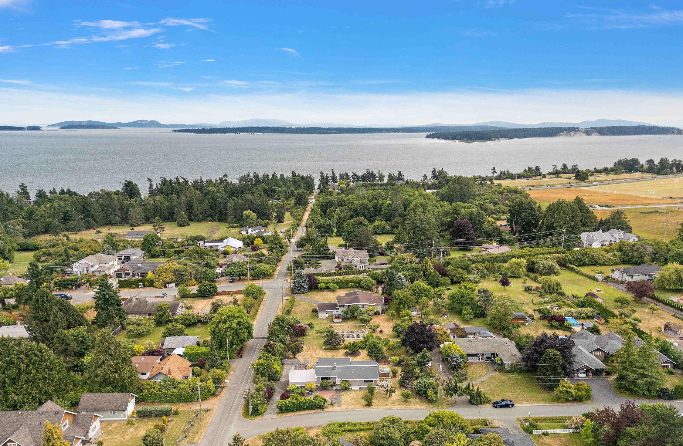 Welcome to 8925 Marshall Road—an exceptional opportunity in the soughtafter Bazan Bay area of North Saanich. This stylish mid-century modern home sits on a beautifully landscaped half-acre corner lot with ocean views.