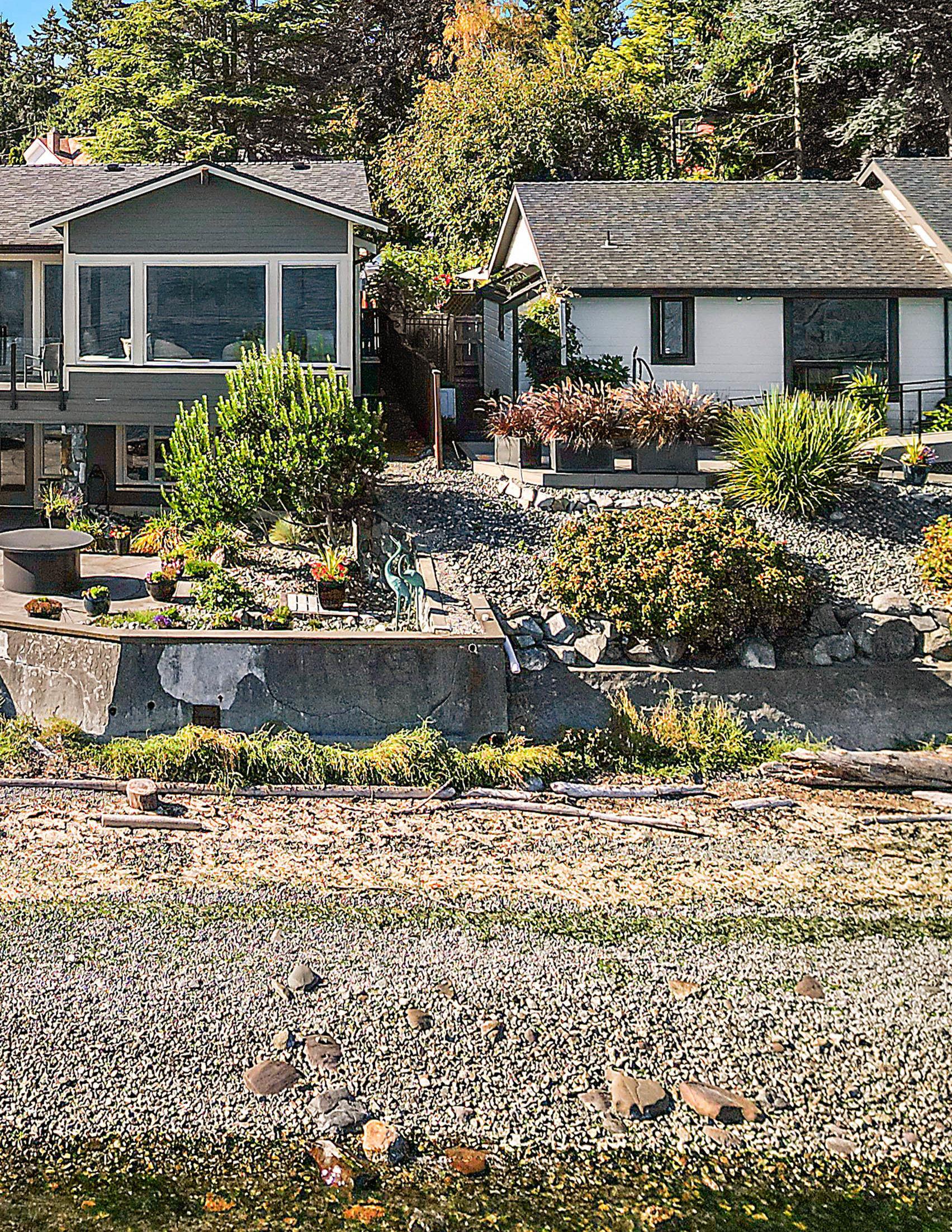 Situated on a quiet cul-de-sac just a short stroll from downtown Sidney, this rare property is positionedasclosetothewater’sedgeaspossible, offering panoramic views of Mt. Baker,