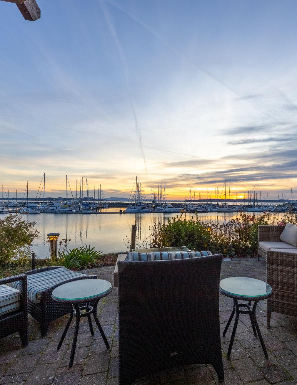 • Outdoorspace: There are two doors that open onto the 1100 square foot private outdoor patio overlooking the ocean where you will find another BBQ and outdoor covered eating area with electric overhead heater and sound system. A large fire table and outdoor furniture for entertaining on summer and fall evenings enjoying the marina and ocean views. The entire area is surrounded by a beautiful flower garden, flowering rock wall, evening lighting, and an automatic irrigation system. Both bedrooms on the lower level open onto this private oceanfront space.