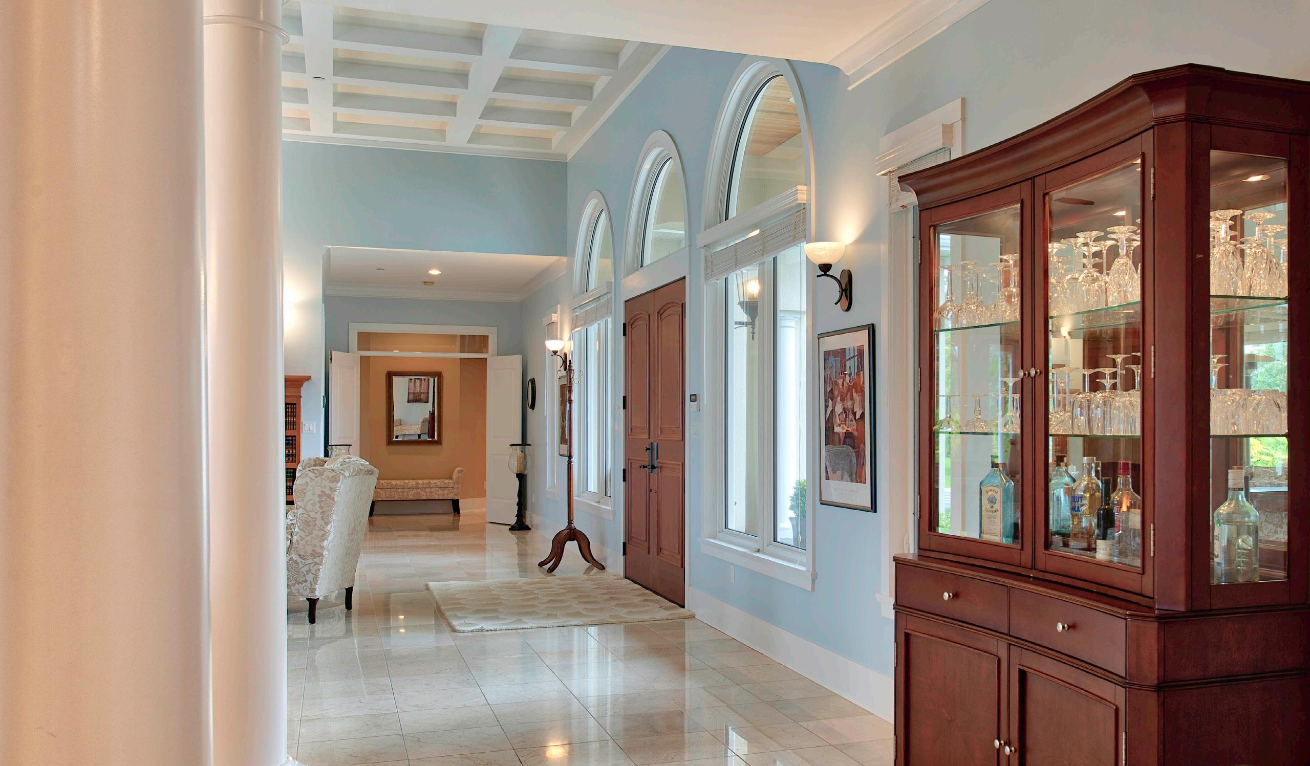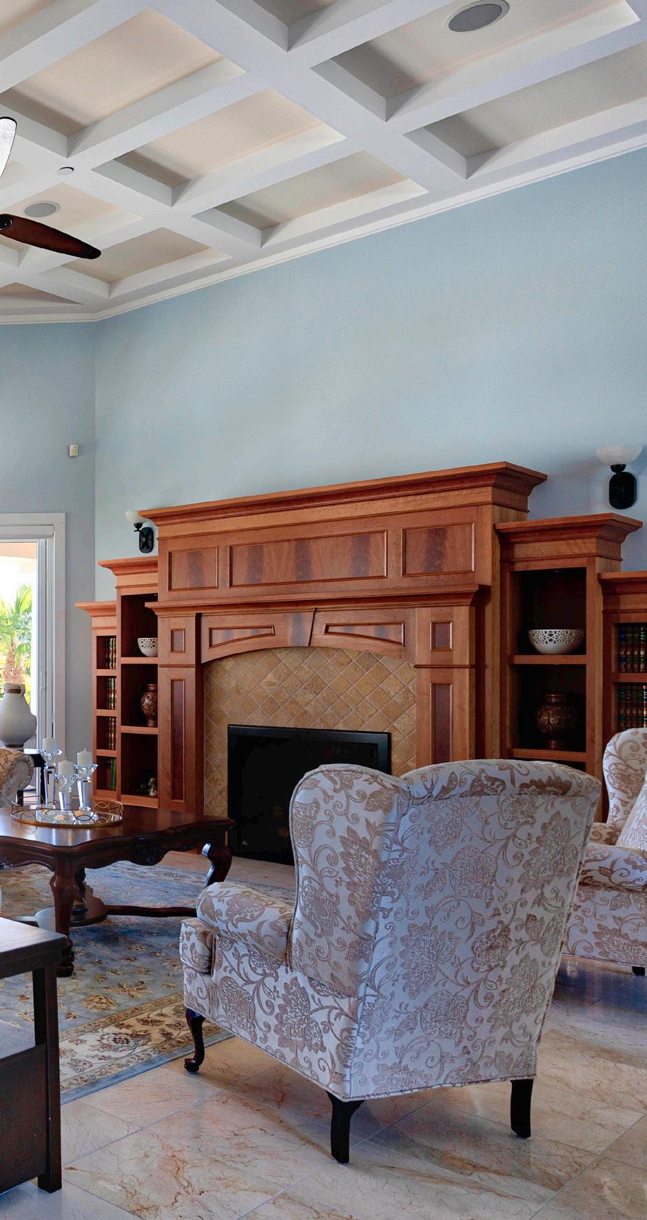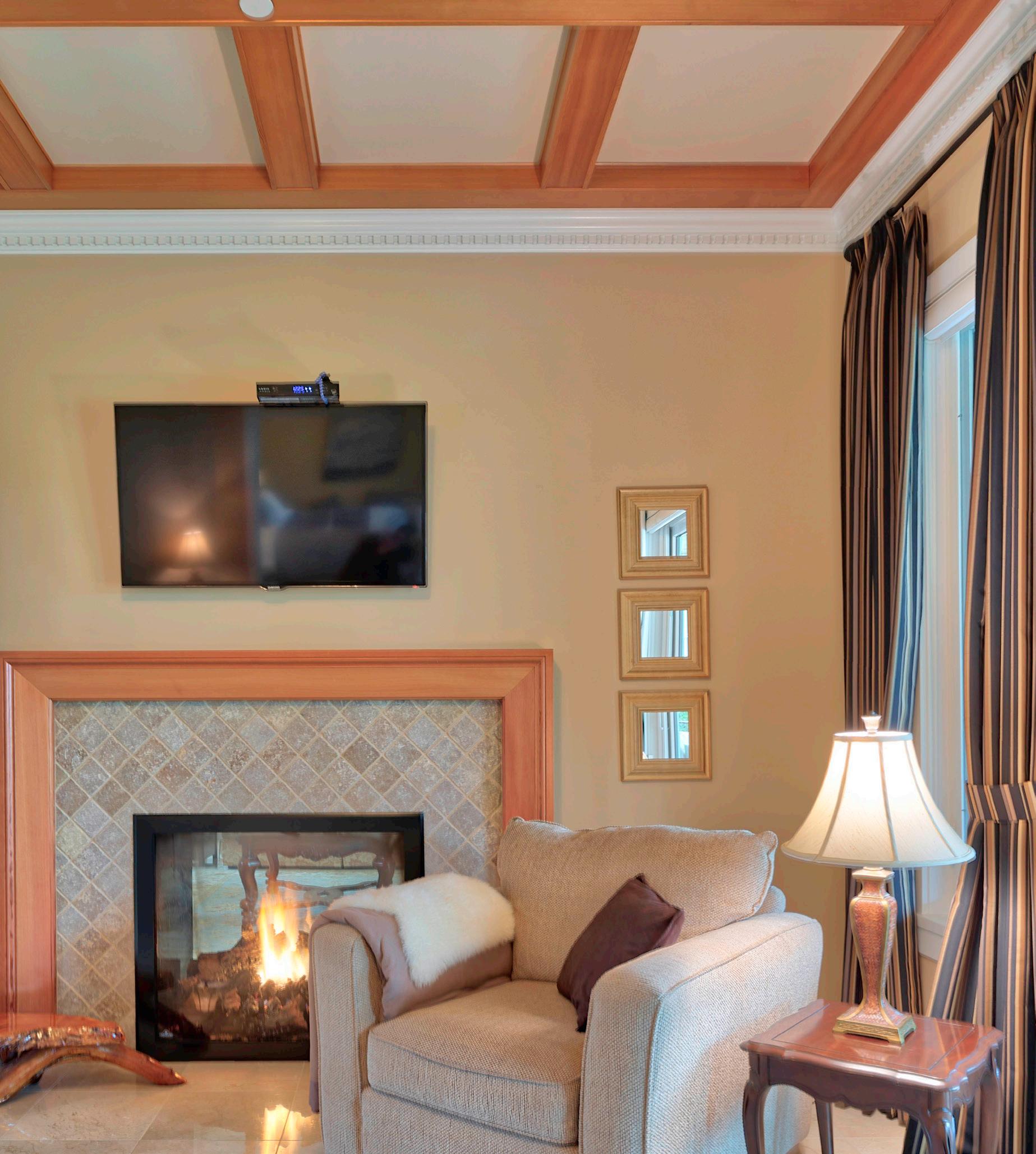 From your grand entry hall, the ocean views greet you through the tall arched windows of your formal living room. 18-foot coffered ceilings convey a sense of space and majesty that’s rivaled only by the breathtaking fireplace surround that