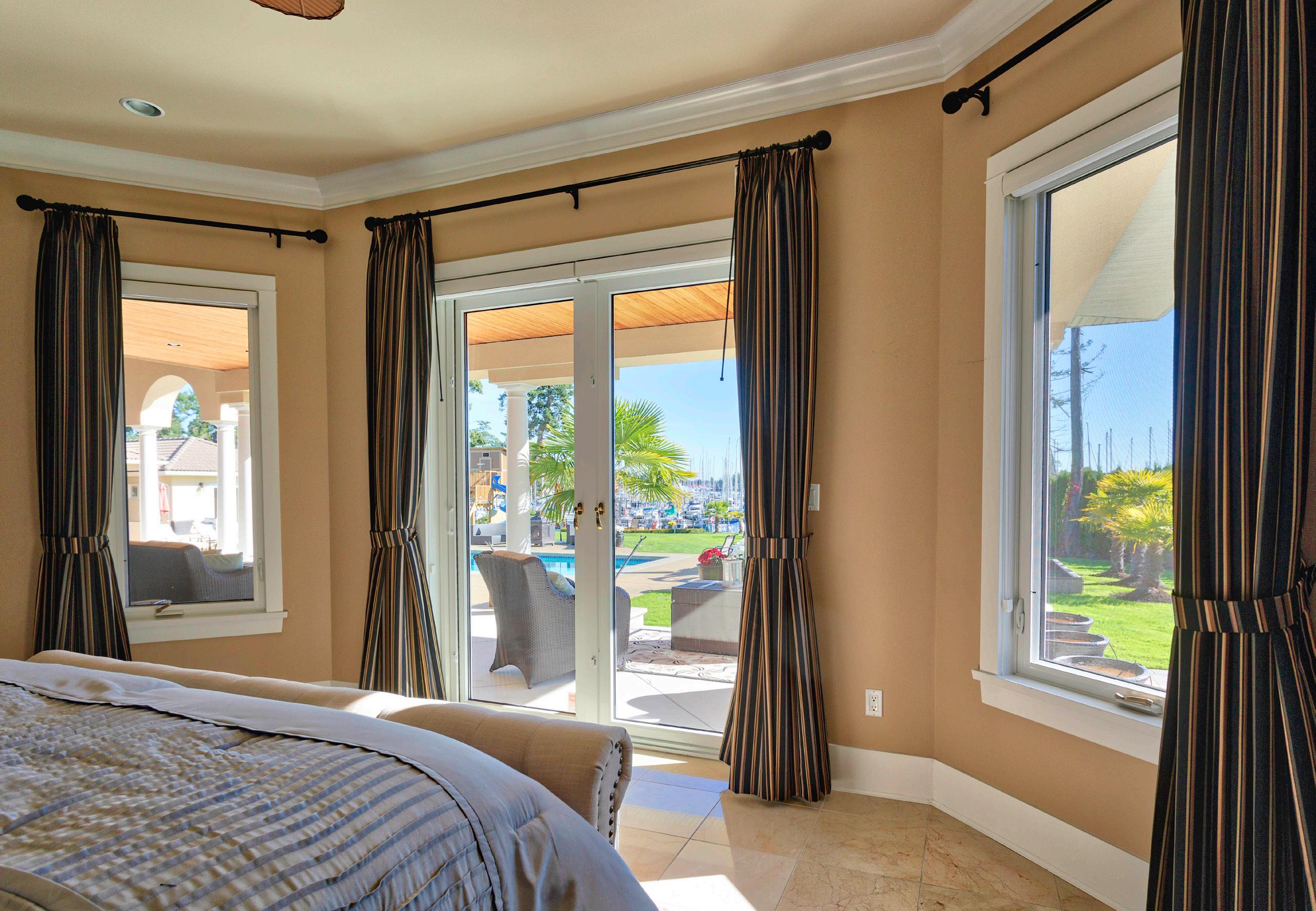 Your master wing is a true getaway, offering a quiet oceanview den with a gas fireplace and European doors to the rear deck. The master bedroom offers unparalleled views of the yacht club, while the ensuite dazzles with its Schonbek chandeliers, wide vanity, gracious soaker tub and multi-nozzled walk-through shower. A separate small steam shower heats up quickly and provides a wonderful way to relax after a long game or trip.