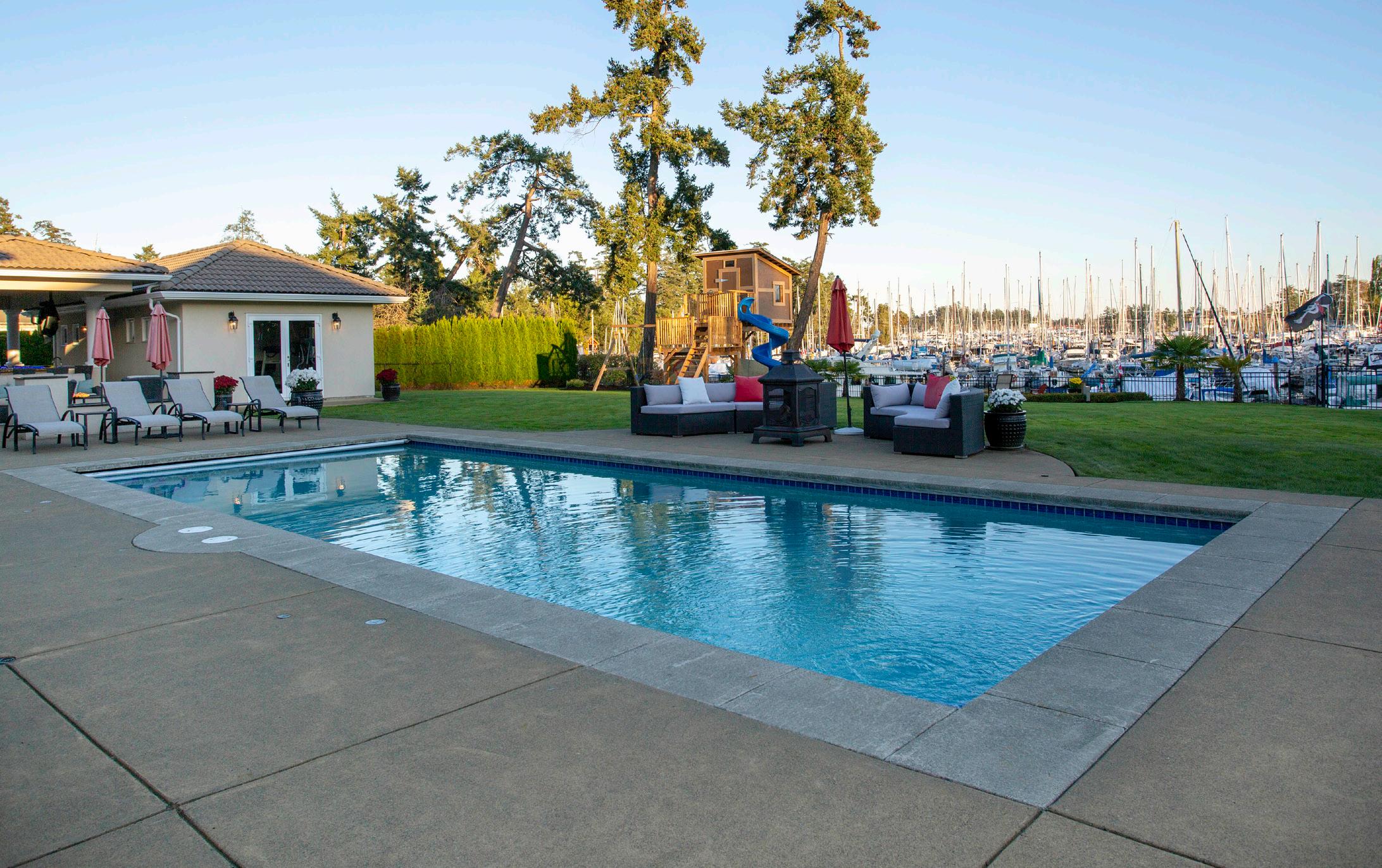 with the stunning boats of the Sidney North Saanich Yacht Club just off your backyard.