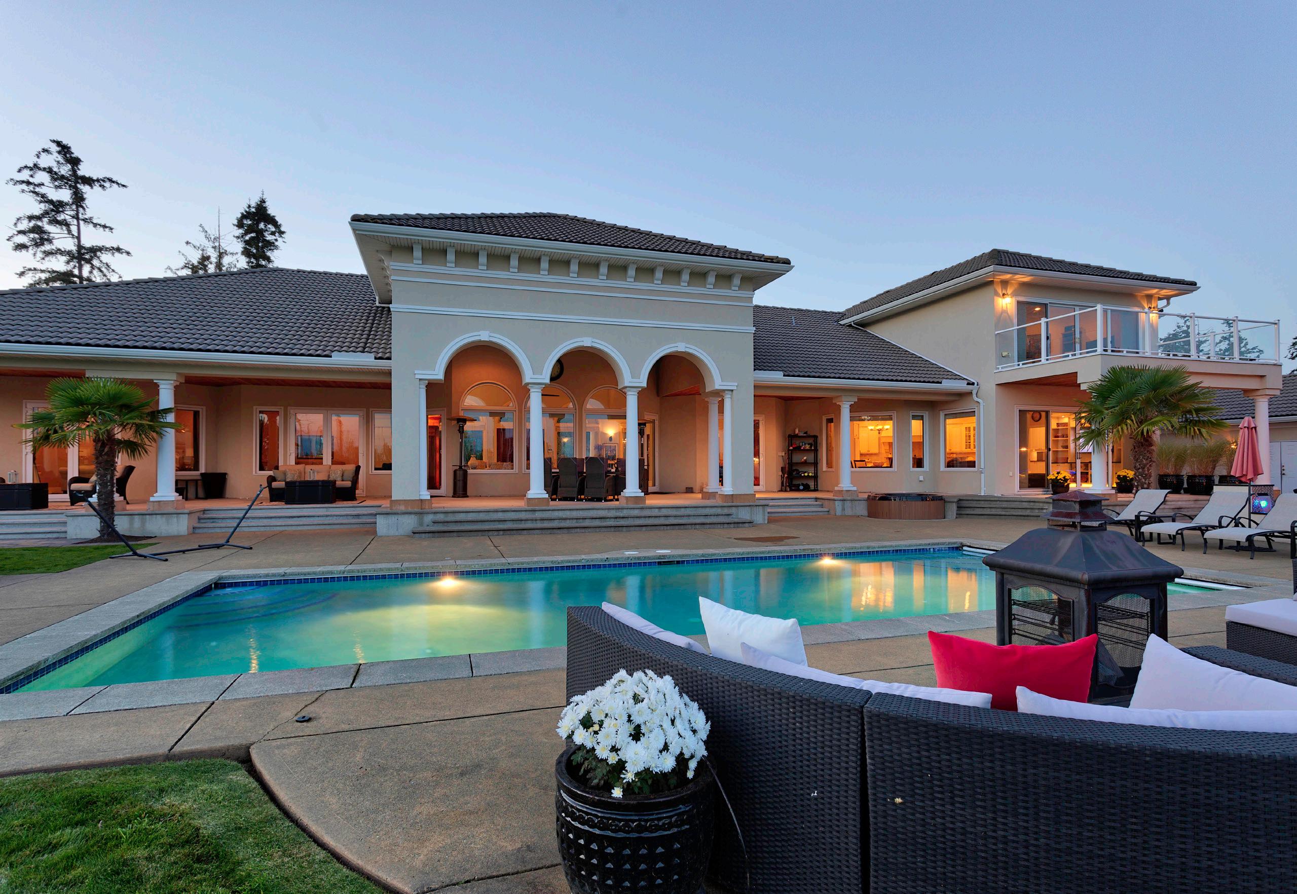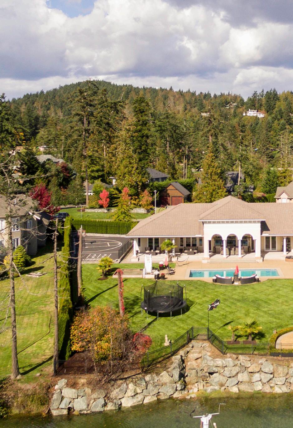 Entertaining beauty: 6194 sf of luxury beyond compare. 4 br/5ba on rare 1 acre backing onto the North Saanich Yacht Club, twice as big as neighbouring lots. South exposure. Have the best parties! Outdoor pool w/Bellagio fountain & aqua jets, hottub, patios & seating galore w/ fountains & fire table. Firepit by the water’s edge. You’ve never seen an outdoor kitchen like this! 2 Twin Eagles BBQs, pizza oven, 2 fridges, 2 sinks, TV & tepanyaki grill. Main kitchen to die for w/granite counters, 6-brnr Viking range w/grill, dbl Viking wall ovens, dbl Subzero fridge. Formal LR and DR w/soaring 18-ft ceilings & walk-out doors to patio. Master wing includes den w/gas fp & stunning ensuite with Schonbek fixtures, soaker tub, steam & walk-through shower. 2nd & 3rd rms in north wing have ensuites for guests. 4th room up is ready for the nanny! Two separate bldgs w/office, art studio, workshop, gym. Landscape lighting; professional-grade basketball court w/ regulation NBA hoop. Gorgeous!