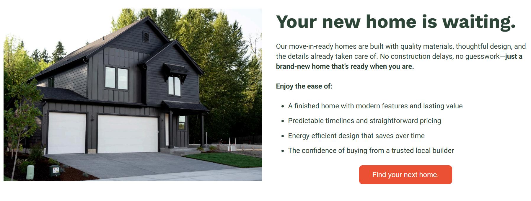 NewcontractsonlyAvailableforselecthomesatselectHoltHomesOregonandWashingtoncommunities(seesalesprofessionalfordetails) ForAdvertisementPurposesOnlyNotallapplicantswillqualifyAllapplicationsaresubjecttocredit approval Programtermsandconditionsaresubjecttochangewithoutnotice Someproductsmaynotbeavailableinallstates OtherrestrictionsandlimitationsmayapplyThisisnotacommitmenttolend CLMMortgageInc #215239,480 WildwoodForestDr 802Spring TX77380,888-984-888 AZMortgageBankerLicense#1047891;CA-LicensedbytheDepartmentofFinancialProtectionandInnovationundertheCaliforniaResidentialMortgageLendingAct RMLA#41DBO-183025; IDMortgageBroker/LenderLicense#MBL-2080215239;NVMortgageCompanyLicense#5786 ORMortgageLendingLicense#215239 TXLicensedunderCompanyNMLS#215239(wwwnmlsconsumeraccessorg) Applicationsmustbereceivedby CLMMortgage,Inc andtheratelockedby4pmPSTon12/2/2025 Homemustcloseby12/31/2025toqualifyforpromotion FinancingofferedbyCLMMortgage,Inc NMLS#215239 TheaboveinformationforFHAMortgageisbasedonanFHALoan with35%downpayment loanamount$417302minimumcreditscoreof680 Paymentsabovereflectprincipalandinterestonly 2/1BuydownCONV NewcontractsonlyAvailableforselecthomesatselectHoltHomesOregonandWashingtoncommunities(seesalesprofessionalfordetails) ForAdvertisementPurposesOnlyNotallapplicantswillqualifyAllapplicationsaresubjecttocredit approval Programtermsandconditionsaresubjecttochangewithoutnotice Someproductsmaynotbeavailableinallstates OtherrestrictionsandlimitationsmayapplyThisisnotacommitmenttolend CLMMortgageInc #215239 480 WildwoodForestDr 802Spring TX77380 888-984-888 AZMortgageBankerLicense#1047891;CA-LicensedbytheDepartmentofFinancialProtectionandInnovationundertheCaliforniaResidentialMortgageLendingAct RMLA#41DBO-183025; IDMortgageBroker/LenderLicense#MBL-2080215239;NVMortgageCompanyLicense#5786 ORMortgageLendingLicense#215239 TXLicensedunderCompanyNMLS#215239(wwwnmlsconsumeraccessorg) Applicationsmustbereceivedby CLMMortgage,Inc andtheratelockedby4pmPSTon12/2/2025 Homemustcloseby12/31/2025toqualifyforpromotion FinancingofferedbyCLMMortgage Inc,NMLS#215239 TheaboveinformationforConventionalMortgageisbasedona ConventionalLoanwitha10%downpayment,loanamountof$540,000minimumcreditscoreof740 Paymentsaboveincludeprincipalandinterestonly 30YearFixed NewcontractsonlyAvailableforselecthomesatselectHoltHomesOregonandWashingtoncommunities(seesalesprofessionalfordetails) ForAdvertisementPurposesOnlyNotallapplicantswillqualifyAllapplicationsaresubjecttocredit approval Programtermsandconditionsaresubjecttochangewithoutnotice Someproductsmaynotbeavailableinallstates OtherrestrictionsandlimitationsmayapplyThisisnotacommitmenttolend CLMMortgageInc #215239,480 WildwoodForestDr 802Spring TX77380,888-984-888 AZMortgageBankerLicense#1047891;CA-LicensedbytheDepartmentofFinancialProtectionandInnovationundertheCaliforniaResidentialMortgageLendingAct RMLA#41DBO-183025; IDMortgageBroker/LenderLicense#MBL-2080215239;NVMortgageCompanyLicense#5786 ORMortgageLendingLicense#215239 TXLicensedunderCompanyNMLS#215239(wwwnmlsconsumeraccessorg) Applicationsmustbereceivedby CLMMortgage Inc andtheratelockedby4pmPSTon12/22/2025 Homemustcloseby1/30/2026toqualifyforpromotion FinancingofferedbyCLMMortgage