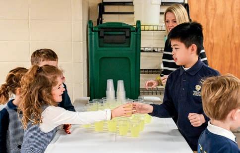 From the earliest years in Early Childhood, our children have opportunities to lead prayer services and assemblies and host performances for their families. Providing children with experiences singing, speaking, and performing in front of an audience are some ways to begin establishing their confidence as leaders. Outside of these experiences, leadership-skill development is woven into our day-to-day practices; play is an essential teaching ground for our students. We are guiding the children to collaborate and be open to other people’s ideas, such as the give-and-take of cooperative play, and modeling how to strategize and problem solve with others. The Alex’s Lemonade Stand fundraiser that PreKindergarten hosts every year also teaches the children about leadership and making a difference in our community. We weave age-appropriate lessons into our curriculum that relate to this service-learning opportunity, teaching the
