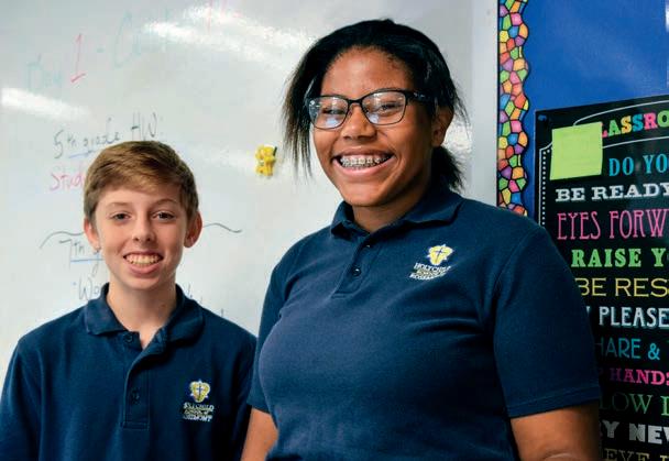 ’18 and her Holy Child classmate Aidan Boyle ’18 lead the class in a discussion during their eighth grade year.