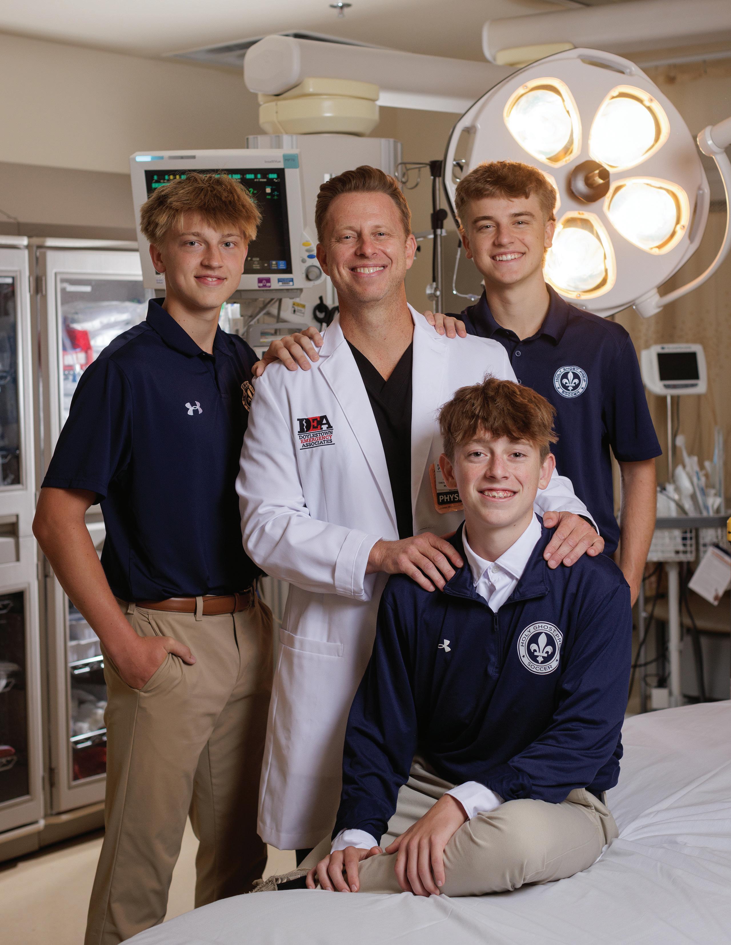 Dr. Tom DiEnna ’96 (pictured with his sons Mason ’26, Brendan ’24, and Dylan ’29) is one of a growing number of Holy Ghost Prep alums who have decided their alma mater is the perfect place for their sons to go to high school, too.