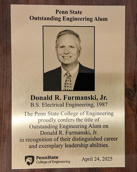 Don Furmanski was chosen as one of Penn State University’s 2025 Outstanding Engineering Alumni. A 1987 graduate of Penn State with a bachelor of science in electrical engineering, Furmanski is vice president of sales and business development for AMETEK, Inc.’s Aerospace & Defense Division, where he leads a global team delivering advanced technology solutions across civil and military aerospace, ground vehicle, naval, and space platforms.