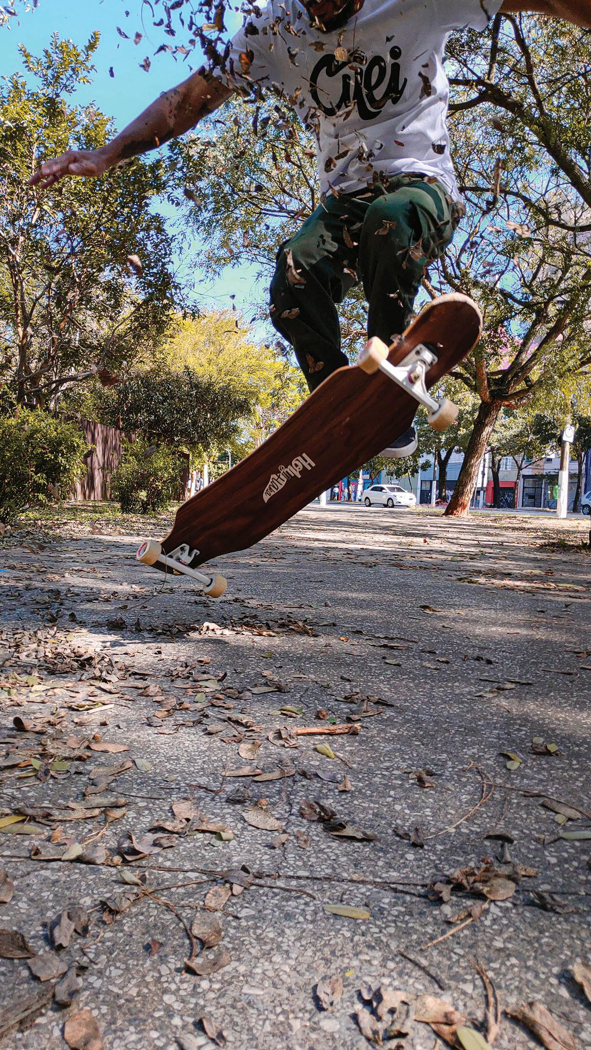 Holy Flying Foot 42,8” Shape Longboard Simétrico. Camber e Top Mount. Construção - 2 Placas (5mm), Fibra de Vidro e Resina. Acabamento em Bambu.