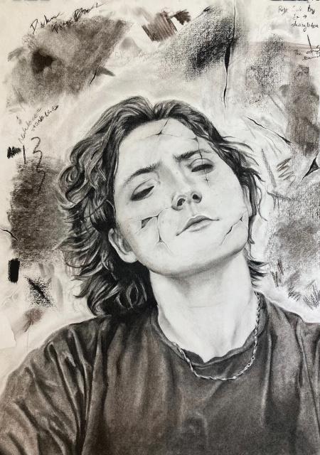 she whispers, holding up a sketch of a girl. The way the girl’s hair falls just past her shoul ders. The way the girl’s arms reach a little longer than most. The way the girl’s nose sticks out of her face, jagged and pointed. It must be me; it has to be me.