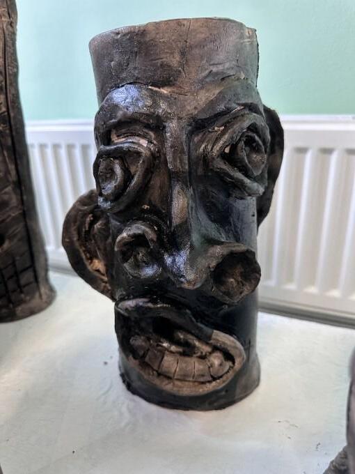 We were fortunate to have a ceramicist come in to work with our wonderful students during the last academic year to produce these outstanding clay ‘Distorted Faces’ vases. We are thankful to Windsor Girls for helping us to fire these beautiful pots - whilst we await a potential kiln ourselves! We have worked hard to stain the pots to create a striking effect!
