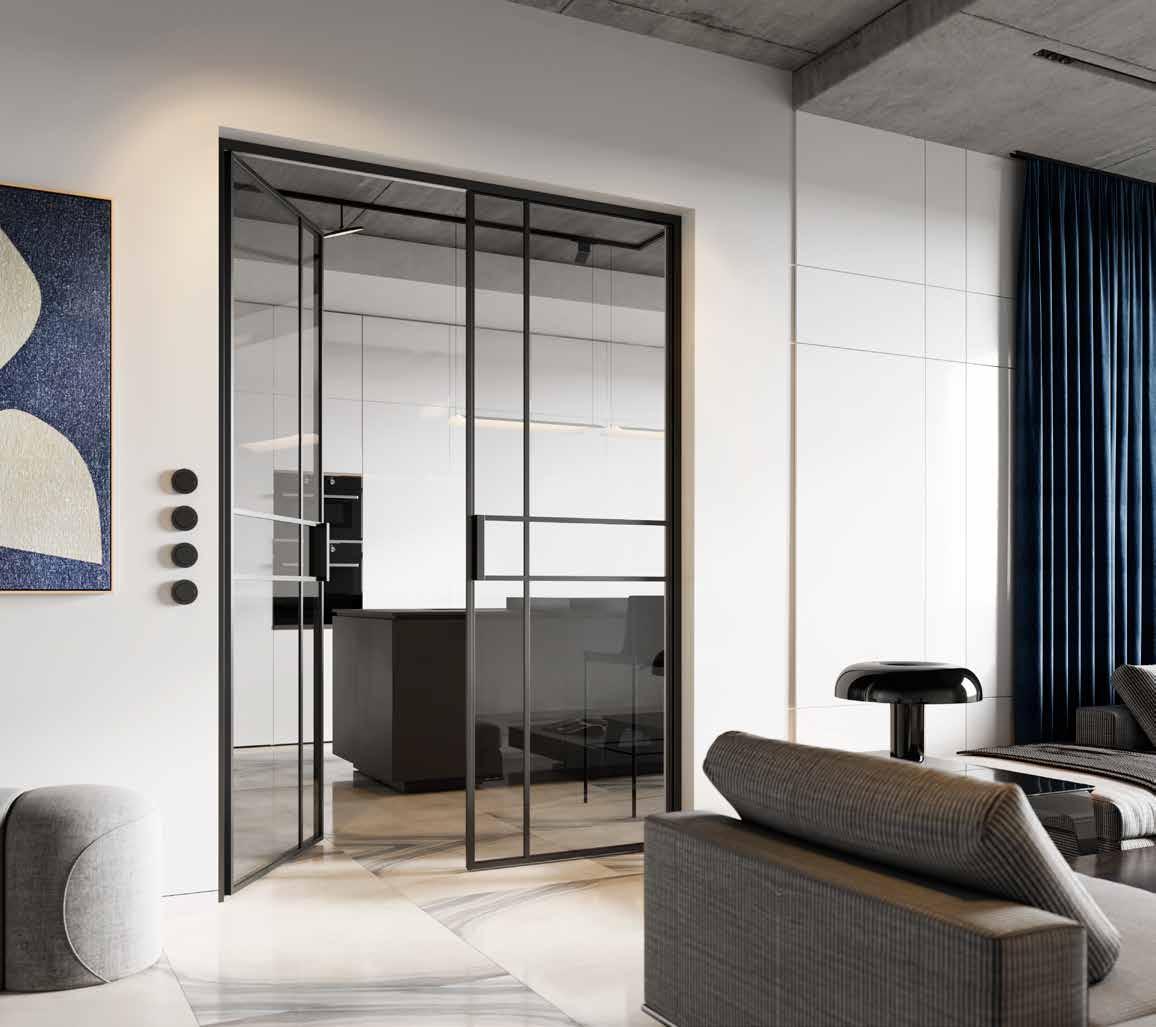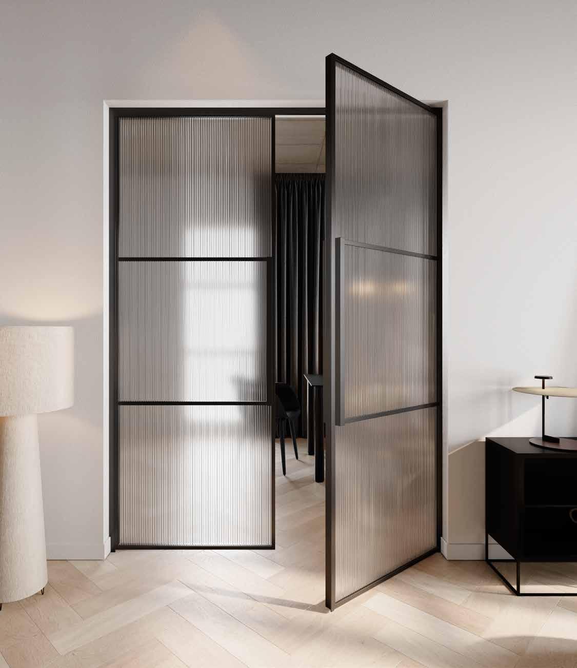 Doors and partition walls for office spaces combine aesthetics, functionality, and modern design. Clean lines and a minimalist style create open, lightfilled work environments that boost productivity and well-being. Premium materials such as steel and glass ensure durability and timeless elegance. Whether for flexible room layouts or permanent structures, our solutions adapt to individual needs, blending functionality with unique design.