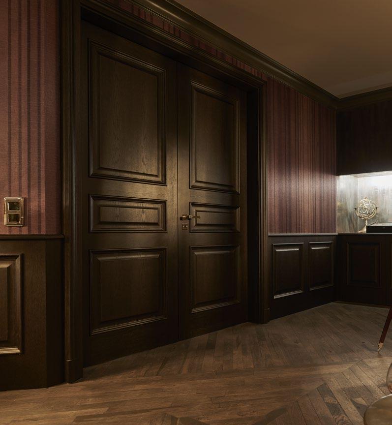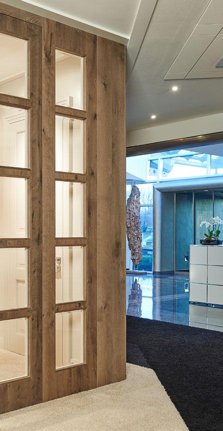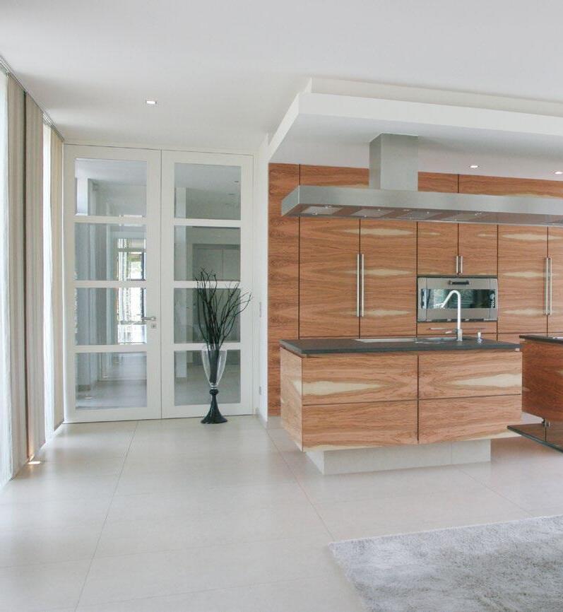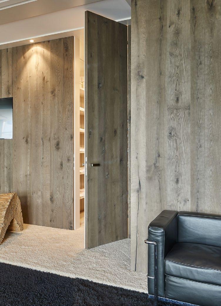 Furnierabwicklung bei Türblatt und Zarge ist Standard bei BARTELS. Darüber hinaus lässt sich der komplette Innenausbau mit aufeinander abgestimmten Furnieren und Oberflächen realisieren.