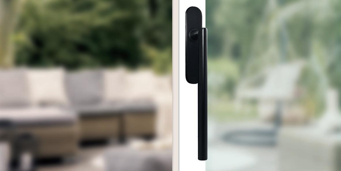 Für Terassentüren bietet KARCHER DESIGN eine Vielzahl an Hebeschiebetürgriffen an. Passend zur Inneneinrichtung kann außerdem zwischen der ovalen oder rechteckigen Ausführung gewählt werden. Außen kann zusätzlich eine Griffmuschel im selben Farbton angebracht werden, welche im EHSSET inklusive ist. Neben der Kosmos Schwarzen Oberfläche stehen diese ebenfalls in Antik Bronze Optik zu Verfügung (S.19).