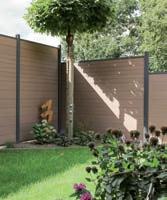 Sie haben die Wahl aus mehreren dutzend Sichtschutzelementen, die Sie in BASIC Einschuboder Klemmpfosten (Bildbeispiel) befestigen. So können Sie alle SYSTEM Elemente miteinander kombinieren ohne Extrakosten für Elementhalter!
