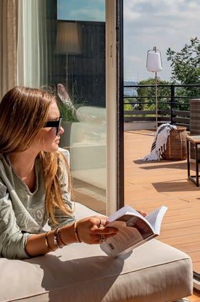 Die verottungsfeste Diele eignet sich optimal für Außenund geschützte Bereiche. Wasserfest, unempfindlich gegen Haushaltsschmutz und ideal für Ihre geselligen Momente.