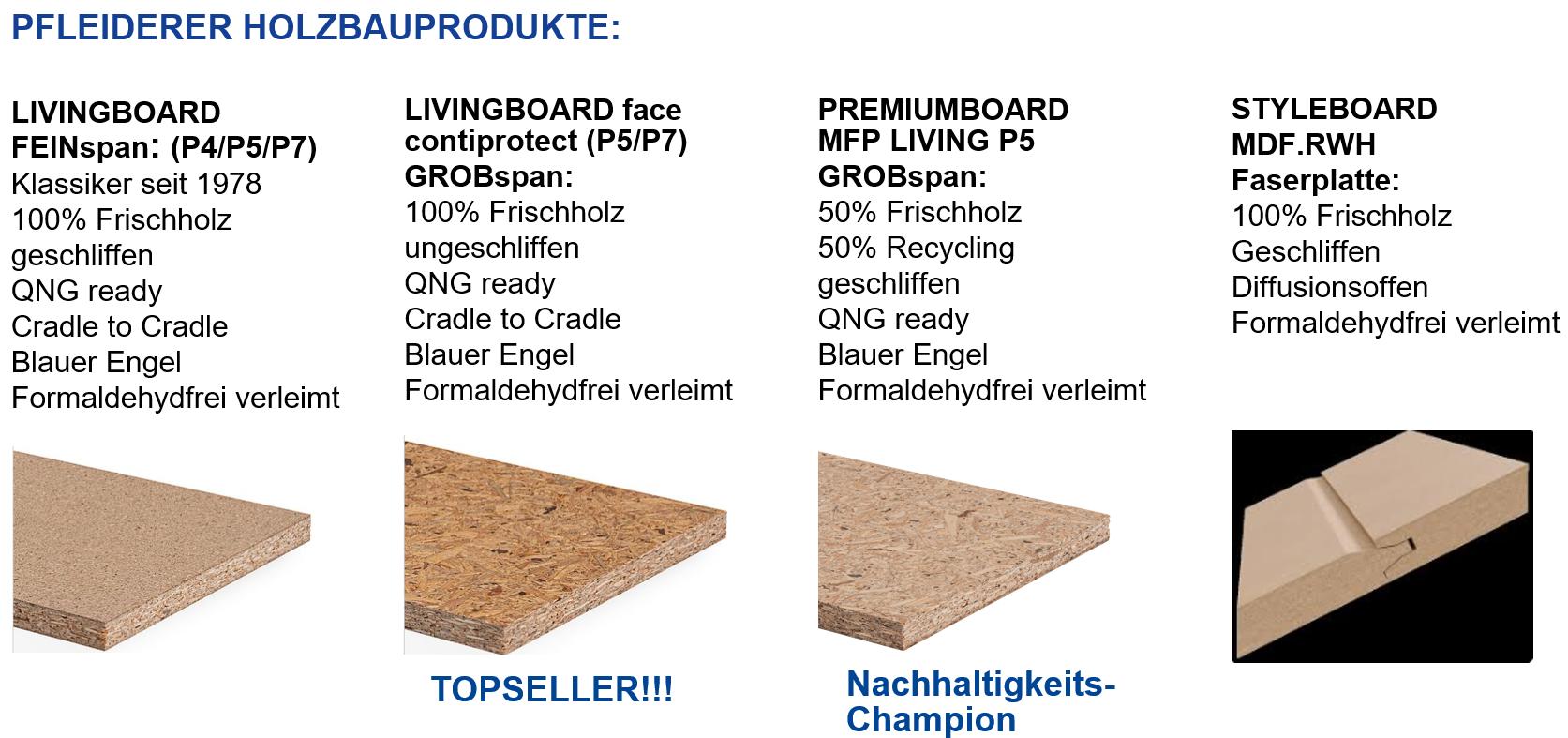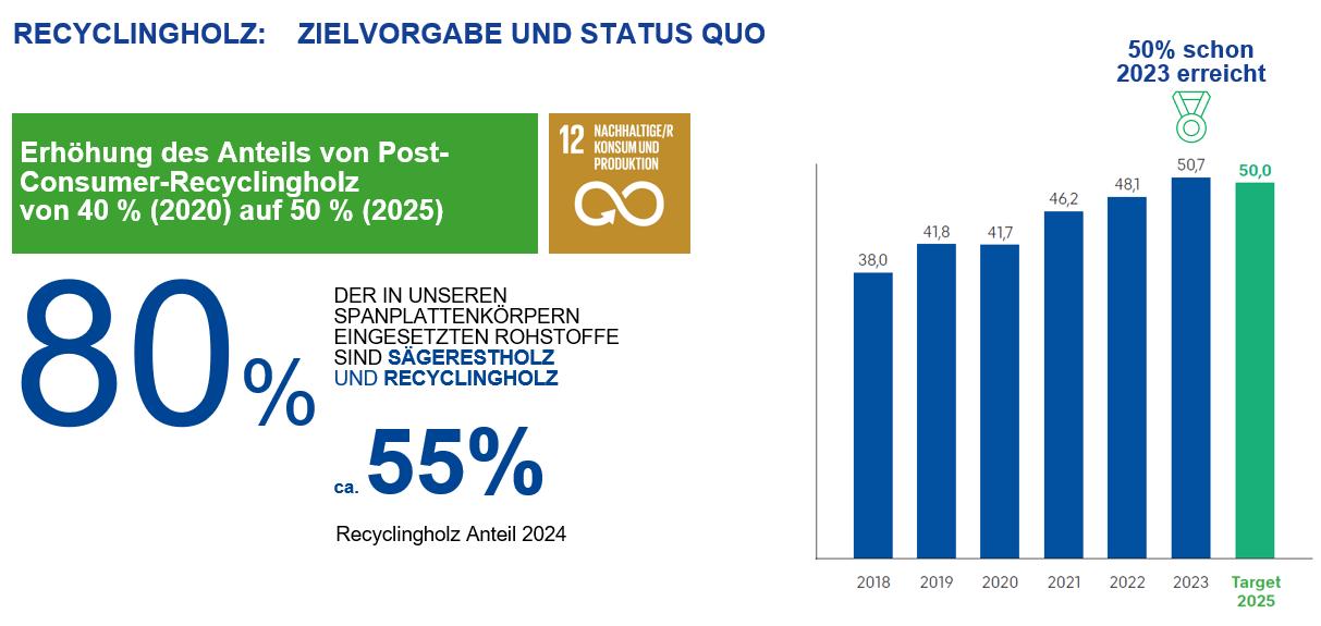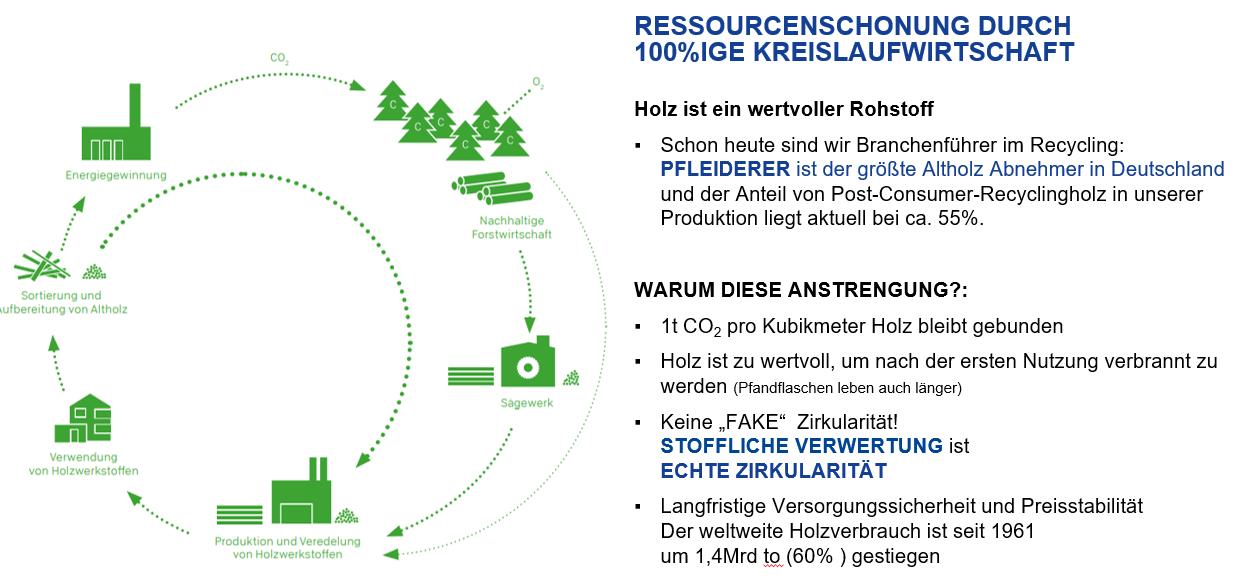 ca. 55% Recyclingholz Anteil in Summe bei allen Pfleiderer Produkten
