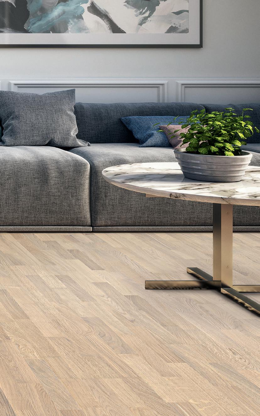Durch die drei versetzt nebeneinander liegenden Elemente auf jeder Diele bekommt jede Raumgrösse Struktur und Halt. Der Schiffsboden lässt Räume lebendig wirken und passt einfach immer – unabhängig von der Größe und Möblierung eines Raums.
