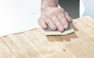 Kante anschließend mit Schleifschwamm (Körnung ca.100) nacharbeiten. Dabei in Strukturlaufrichtung über die Kante schleifen.
