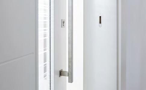 Erleben Sie FUNKTIONS-Türen von PRÜM als Wohnungseingangstür im perfekten Designverbund mit verglasten Lichtausschnitt-Türen und Ganzglastüren.