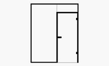 Bei dem Drehtür-Eckbeschlag wird die Tür bodengelagert und rahmenlos geführt. Eine Zarge ist hier nicht erforderlich.